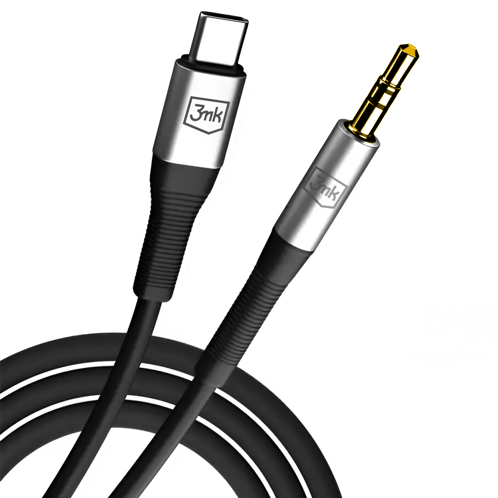 Passer le carrousel d'imagesCâble auxiliaire USB-C vers Jack 3.5mm, 3mk. Qualité sonore Transmission audio sans perte. Compatibilité avec appareils avec port USB-C et prise jack 3.5mm. Conception anti-enchevêtrement. Longueur 1 mètre. Construction en aluminium et silicone.