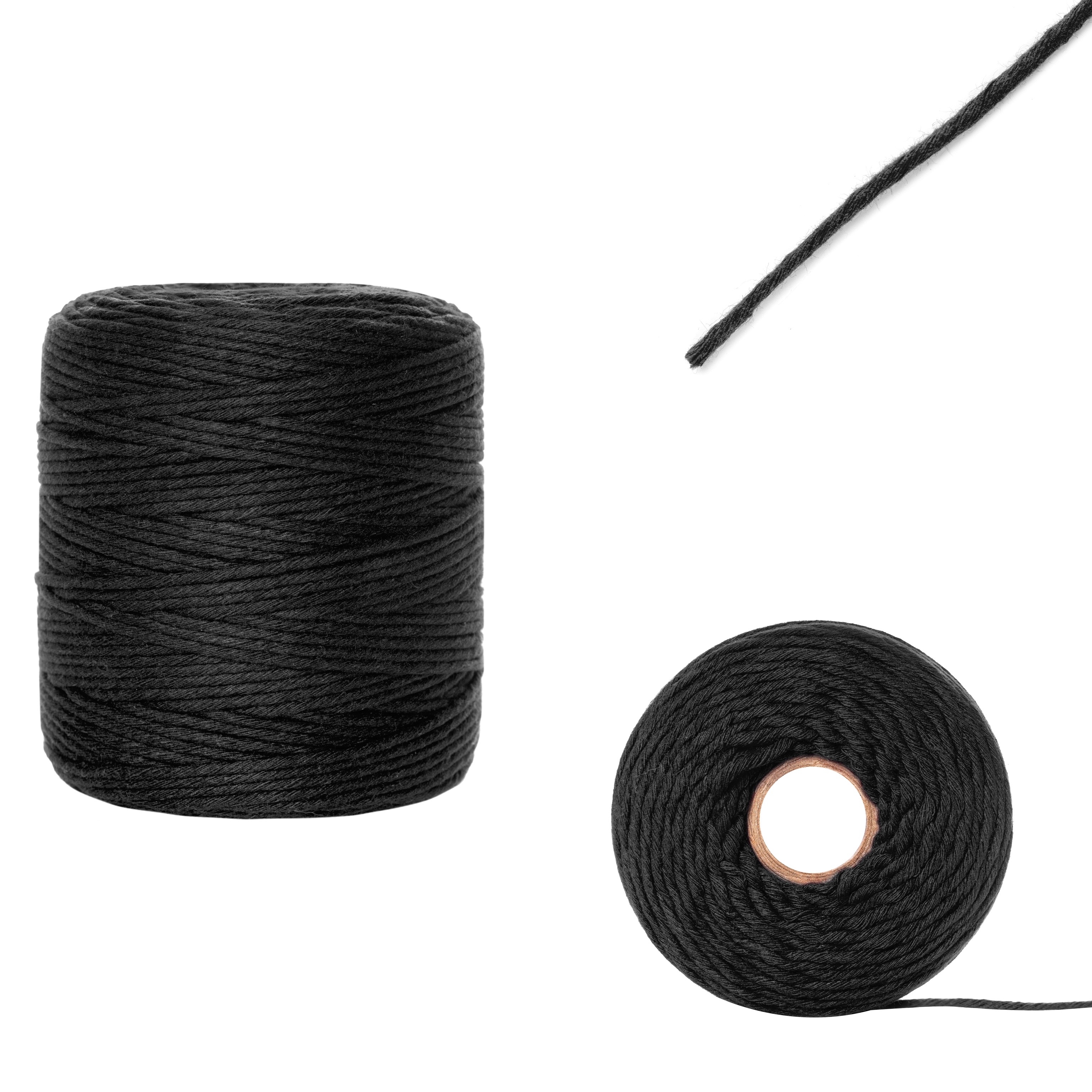 3mm x 200m Corde Macramé Fil de Coton Noir | +/- 0.5 mm d’Épaisseur | Ficelle de 15 Plis