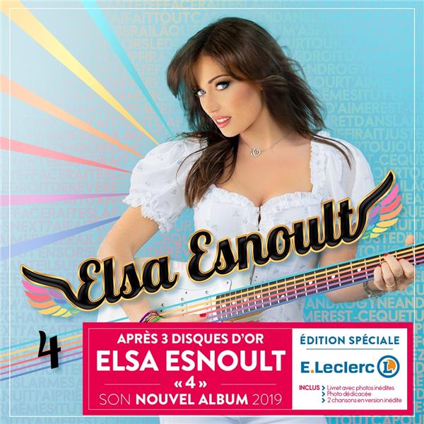 Après trois albums disques d'or, Elsa Esnoult nous propose son quatrième opus qui a pour titre tout simplement « 4 ». Enregistré à Nashville, à Paris et à Toulouse, il offre encore une fois une variété étonnante de titres qui ont tous de fortes chances de devenir des « tubes ». Elsa Esnoult nous dévoile une fois de plus toutes les facettes de son talent de chanteuse mais aussi d'auteur compositeur. « 4 », le nouvel album d'Elsa Esnoult, héroïne de la série Les Mystères de l'Amour diffusée sur TMC (2 millions de téléspectateurs cumulés par épisode) s'envolera, comme ses trois précédents albums, vers le succès.