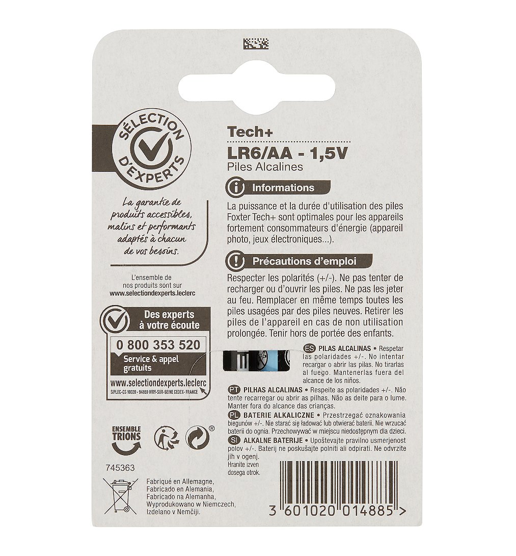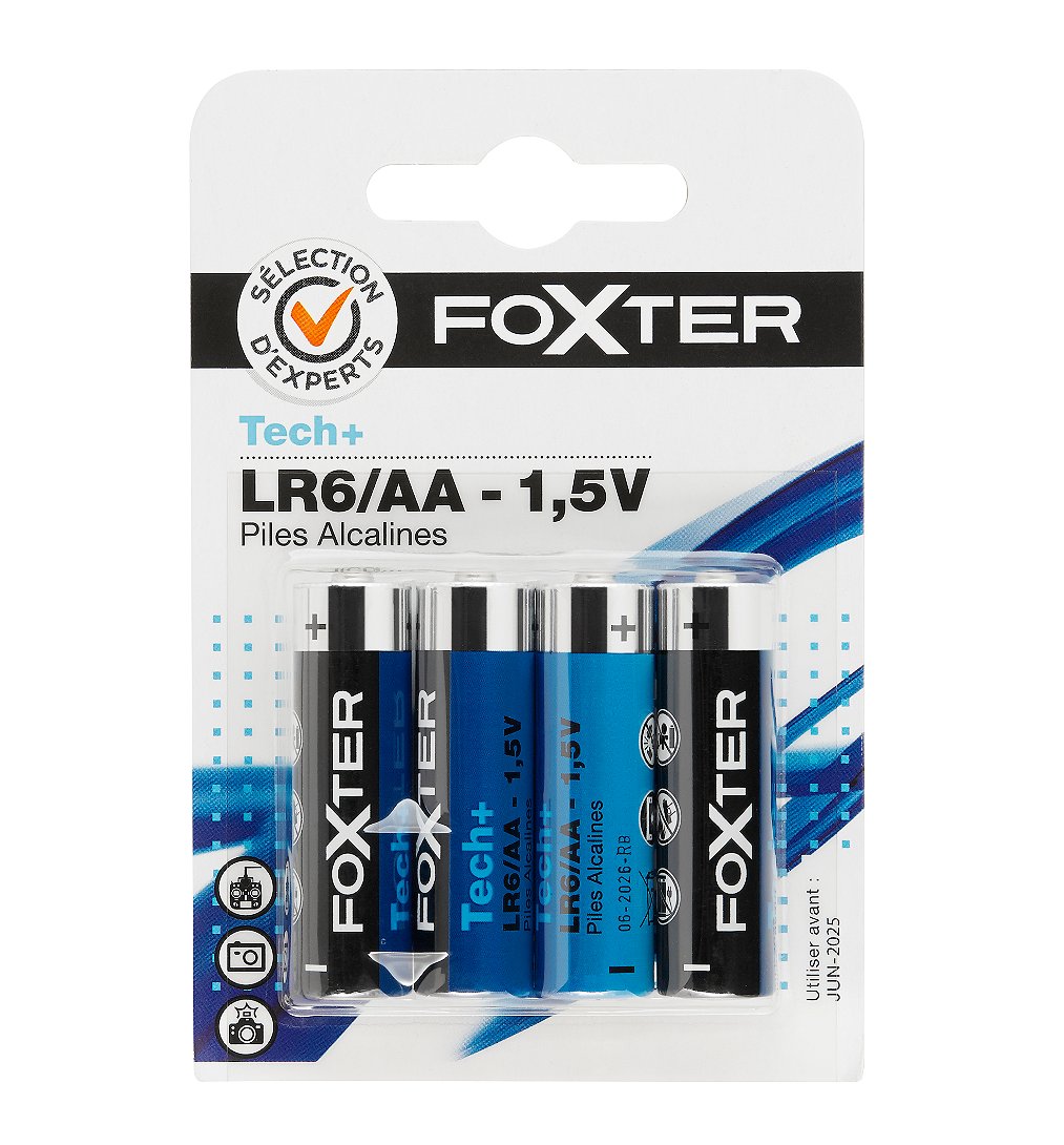 | Libellé | 4 piles alcalines LR6/AA 1,5V - TECH+ - Sélection d'Experts - Foxter |