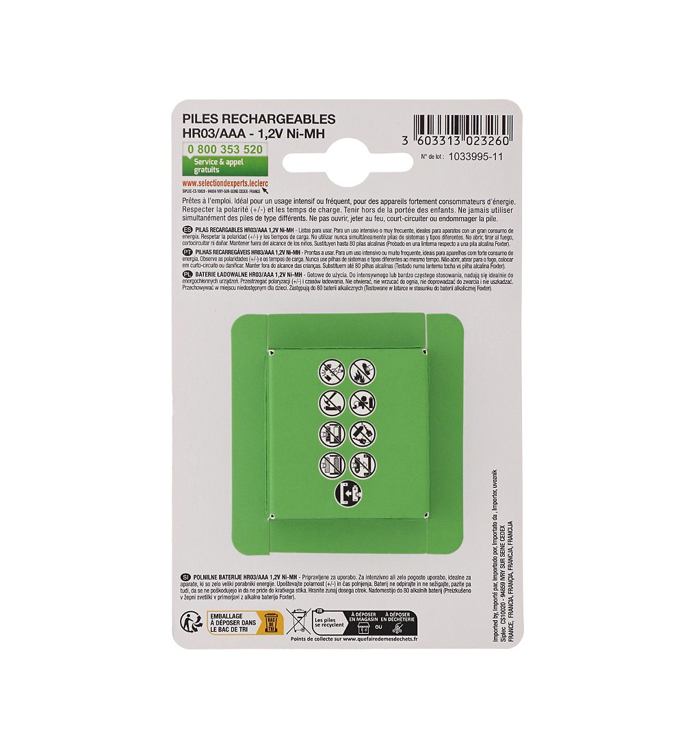 4 piles rechargeables HR03/AAA 850 mAh - Sélection d'Experts - Foxter