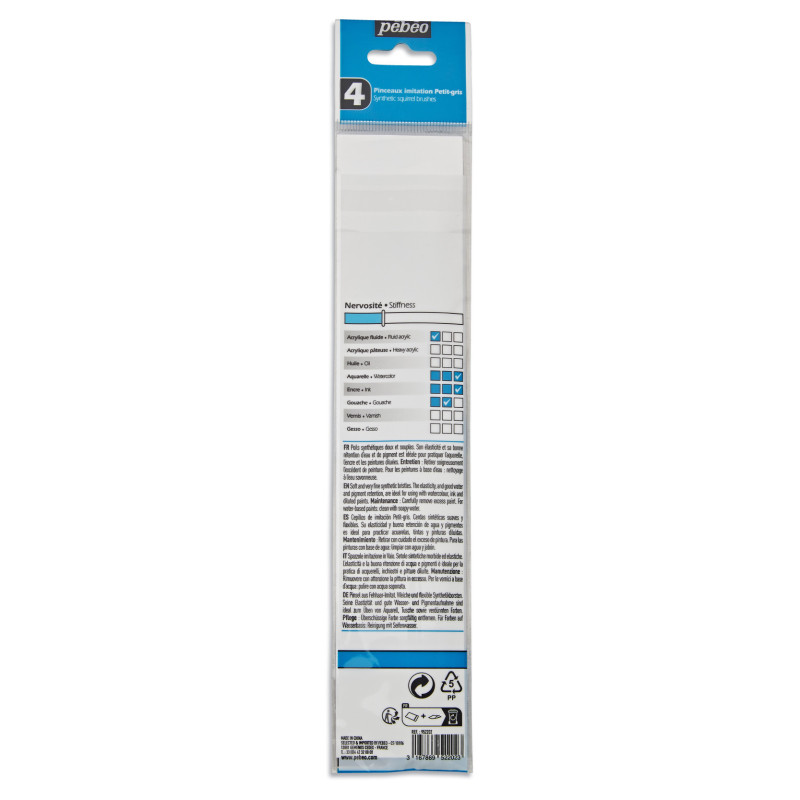 Les pinceaux aquarelle Pébéo offrent une qualité exceptionnelle et sont indispensables pour tous ceux qui souhaitent pratiquer l'aquarelle, l'encre et les peintures diluées avec précision et confort. Ajoutez ces pinceaux à votre collection d'outils d'art et découvrez une nouvelle dimension dans votre expression artistique.