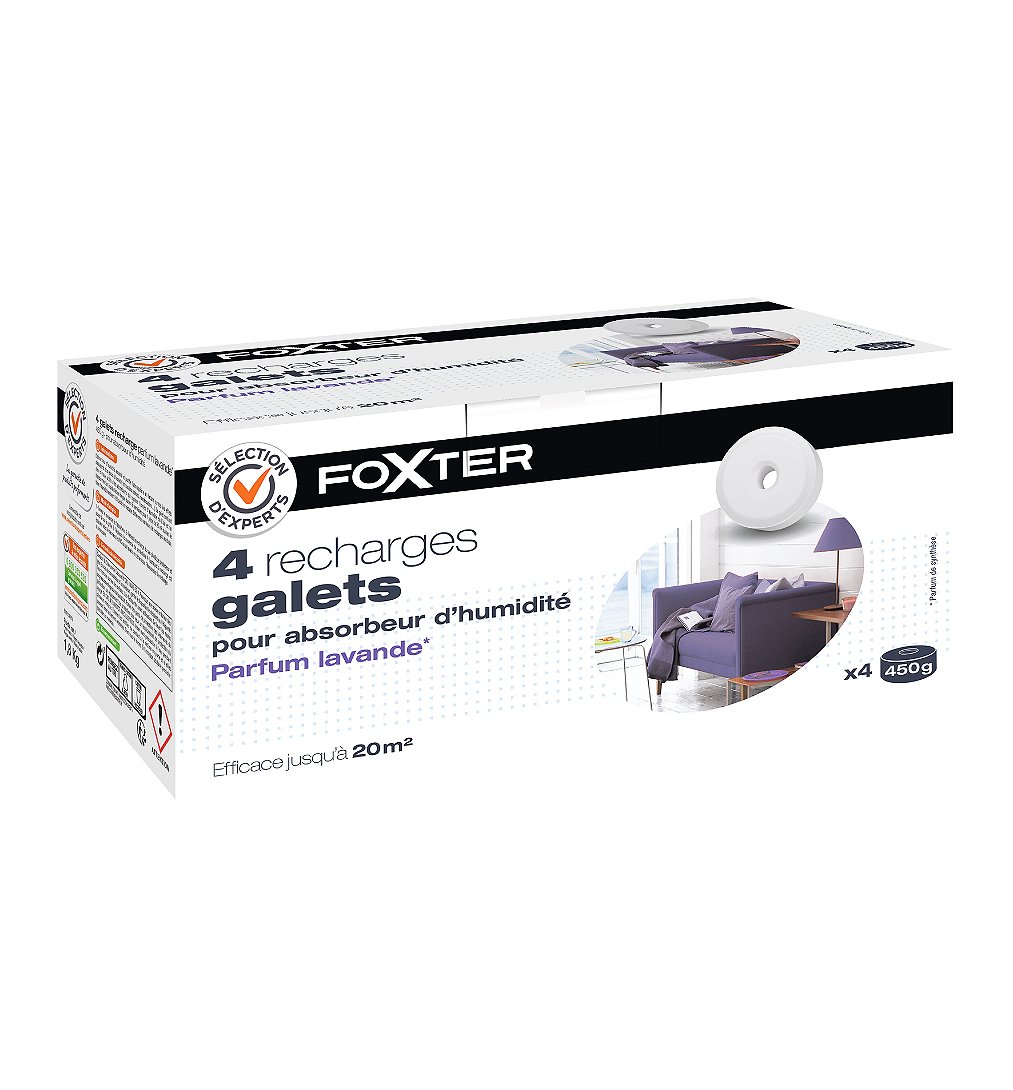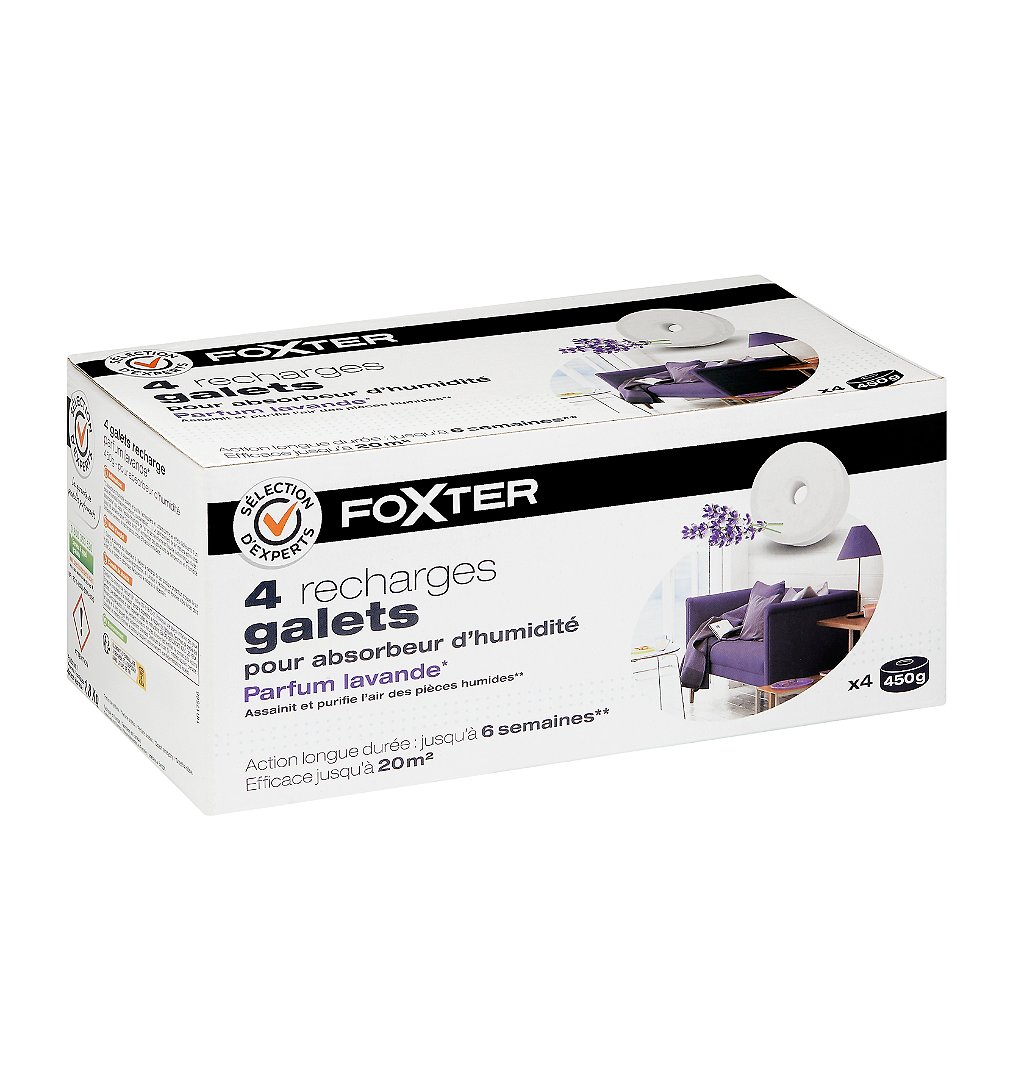 | Libellé | 4 recharges galets pour absorbeur d'humidité, parfum lavande, 450g - Sélection d'Experts - Foxter |
