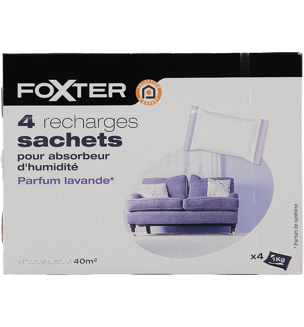 | Libellé | 4 recharges sachets pour absorbeur d'humidité, parfum lavande, 1kg - Sélection d'Experts - Foxter |