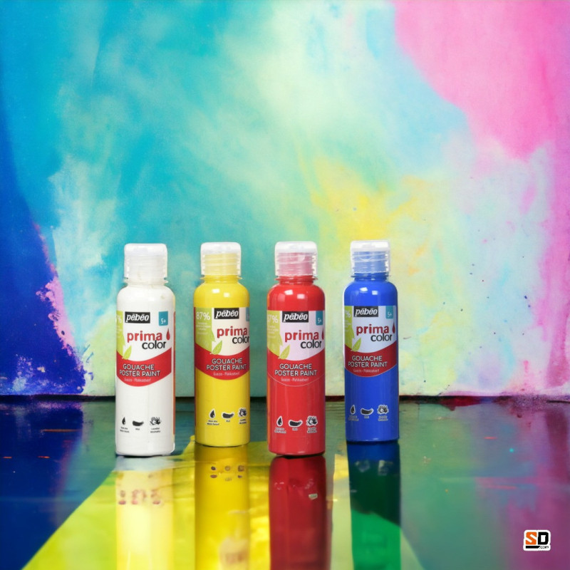 - La peinture gouache Primacolor de Pébéo idéale pour les activités avec les enfants. Elle se lave très facilement à l'eau sur la peau