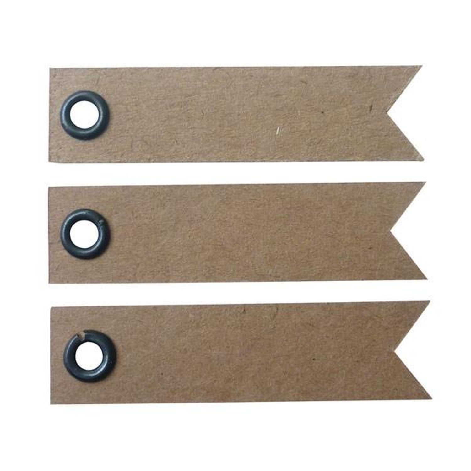 2 kits de 20 étiquettes kraft en forme de fanion, dimension 5 x 1,2 cm. A utiliser pour le scrapbooking, la décoration d'intérieur, pour compléter le service de table d'un mariage. Ces étiquettes comprennent un trou avec un œillet marron foncé pour y faire passer une ficelle.