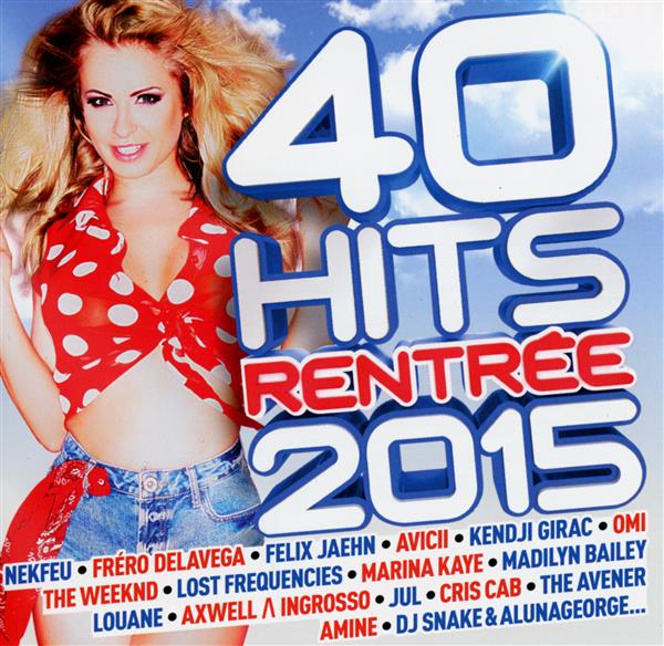 40 hits réunis en 2cd à prix mini. 40 Hits Rentrée 2015, la compilation des 40 Hits incontournables pour attaquer une belle rentrée avec Nekfeu, Feder, Frero De la Vega, Major Lazer, Avicii, DJ Snake, Omi, Keindji Girac, Lost Frequencies, Gad Elmaleh et bien plus encore !