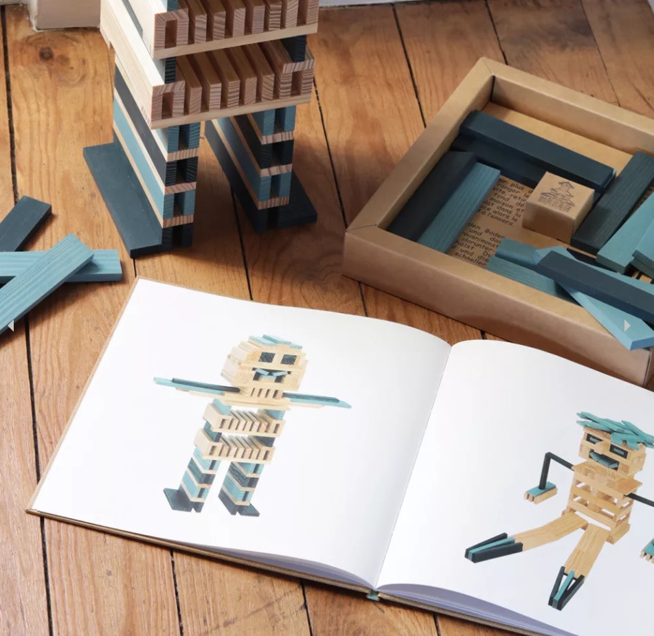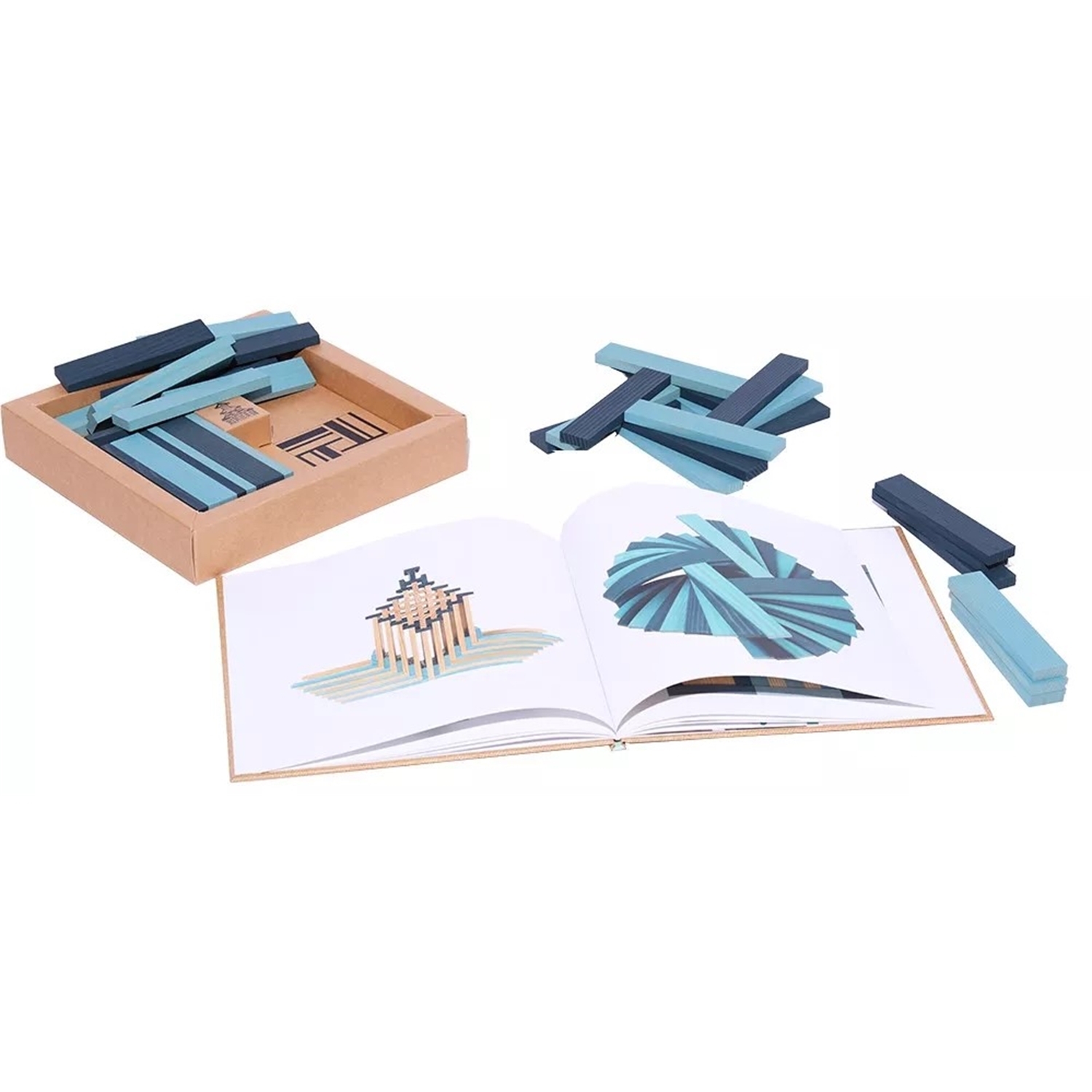 Ce coffret couleur contient 1 livre d'art KAPLA, 20 planchettes bleu clair et 20 planchettes bleu foncées. Grâce au livre, fantastique source d'inspiration, les planchettes prennent vie et toutes sortes d'architecture et de créatures s'échappent des mains du bâtisseur.