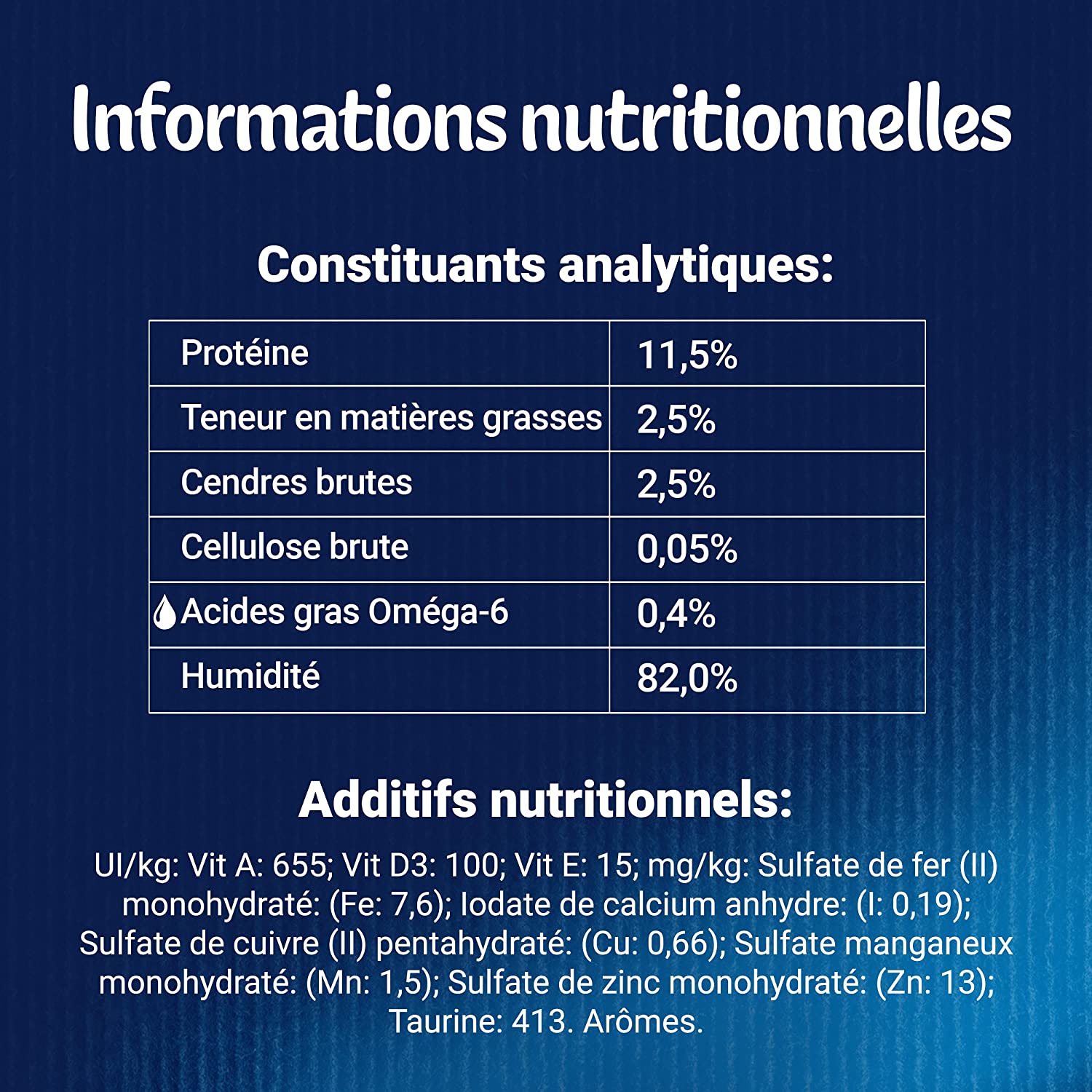 - Cendres brutes : 2,5 %