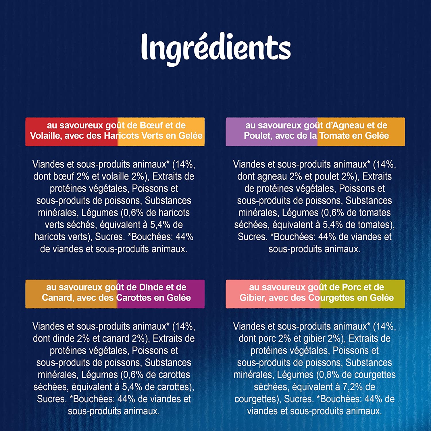 *Bouchées : 44 % de viandes et sous-produits animaux.