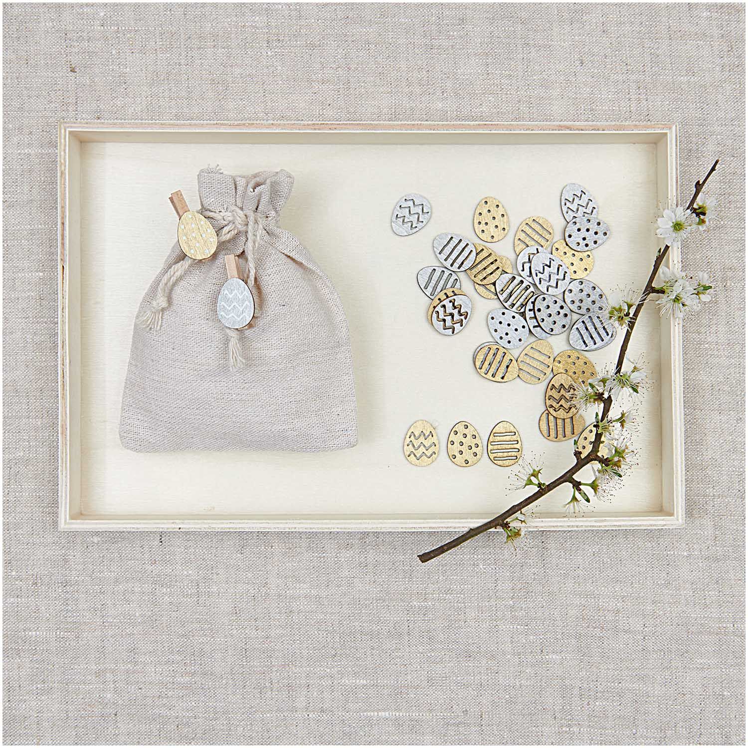 | Libellé | 48 Confettis en bois - Oeufs Pâques - Dorés et argentés |