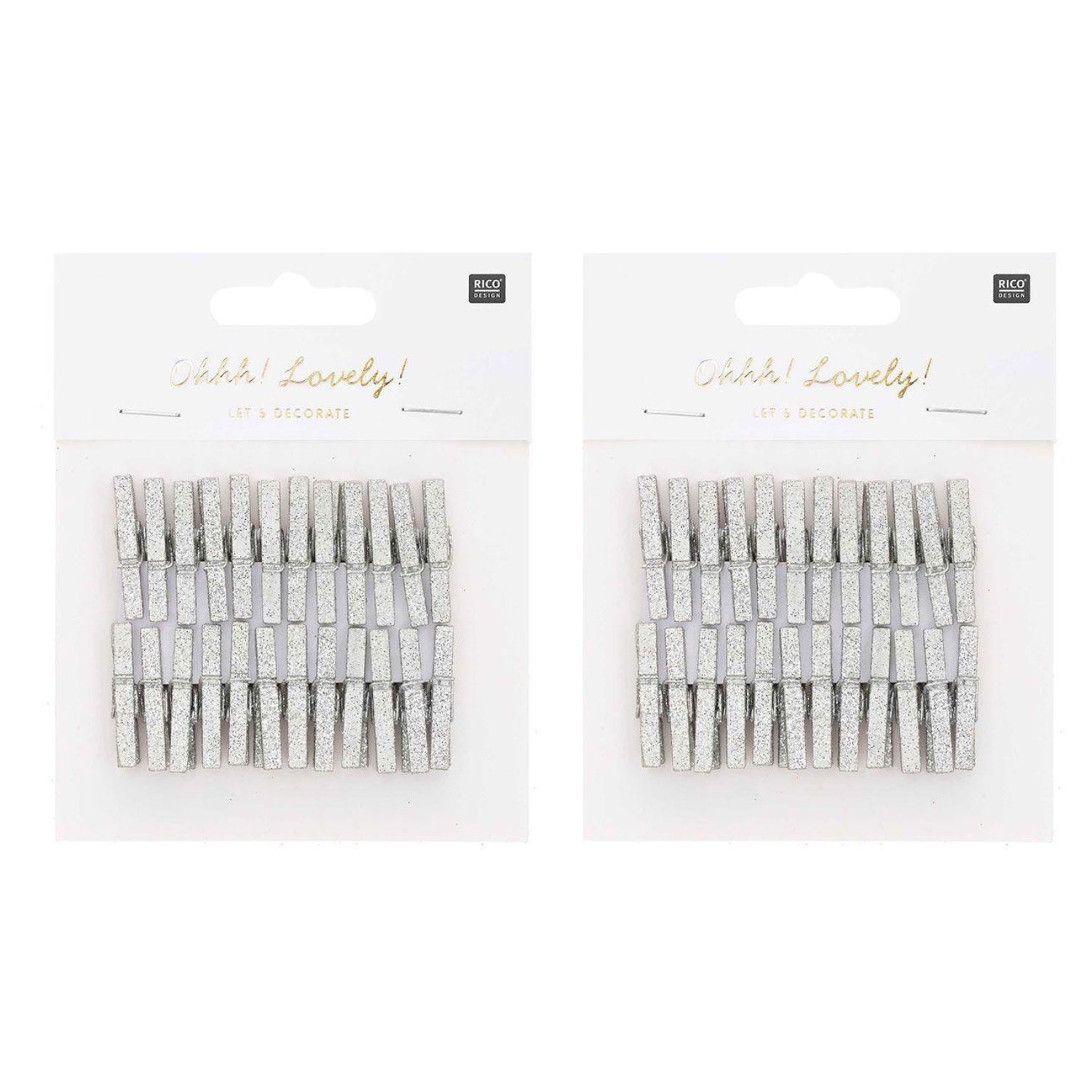 2 kits de 24 petites pinces en bois pailletés argent. Accrochez vos créations de Noël ou créer un calendrier de l'avent avec ces pinces argentées !