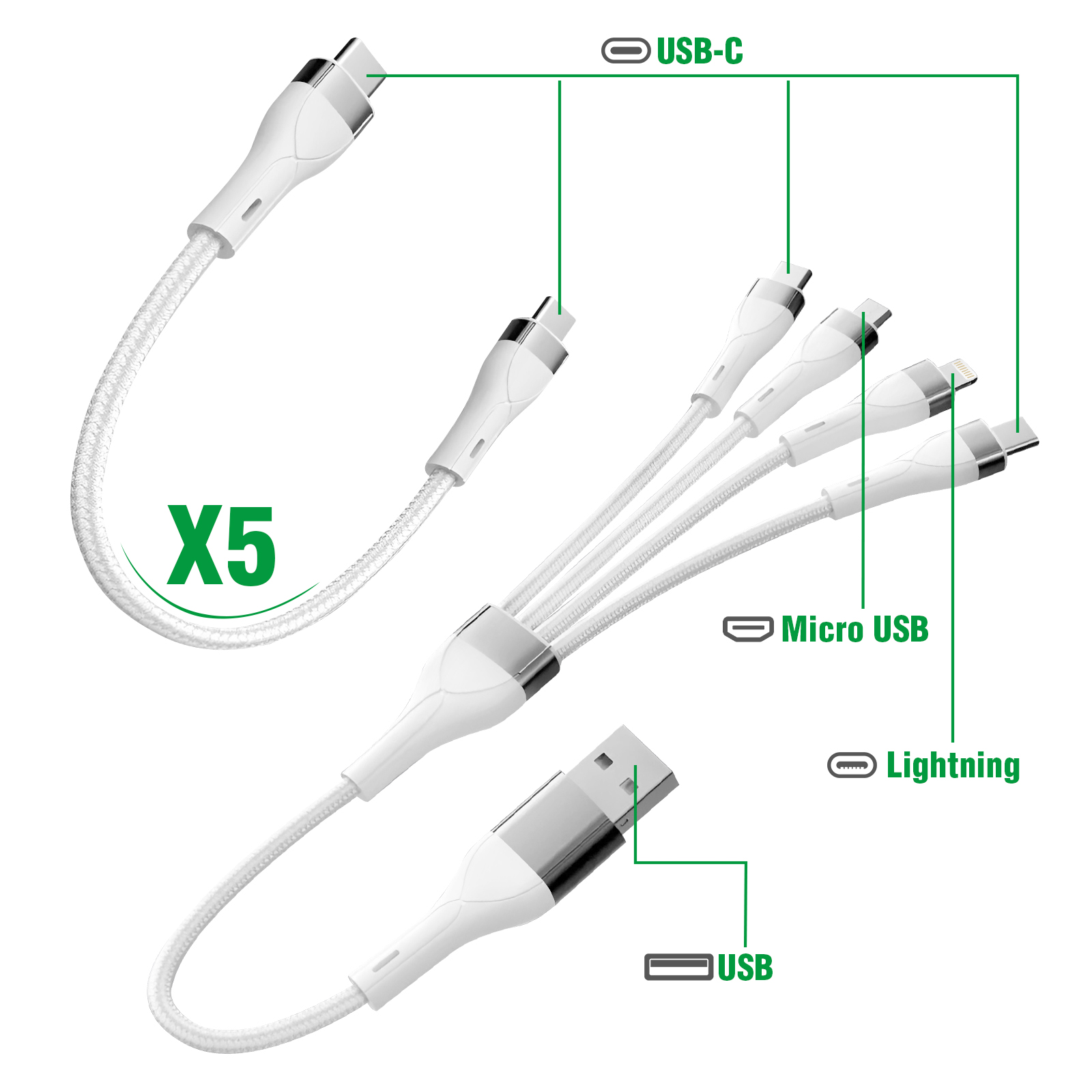 4smarts Station de Charge 100W Multiport 5 USB-C + USB et 6 Câbles inclus Gris