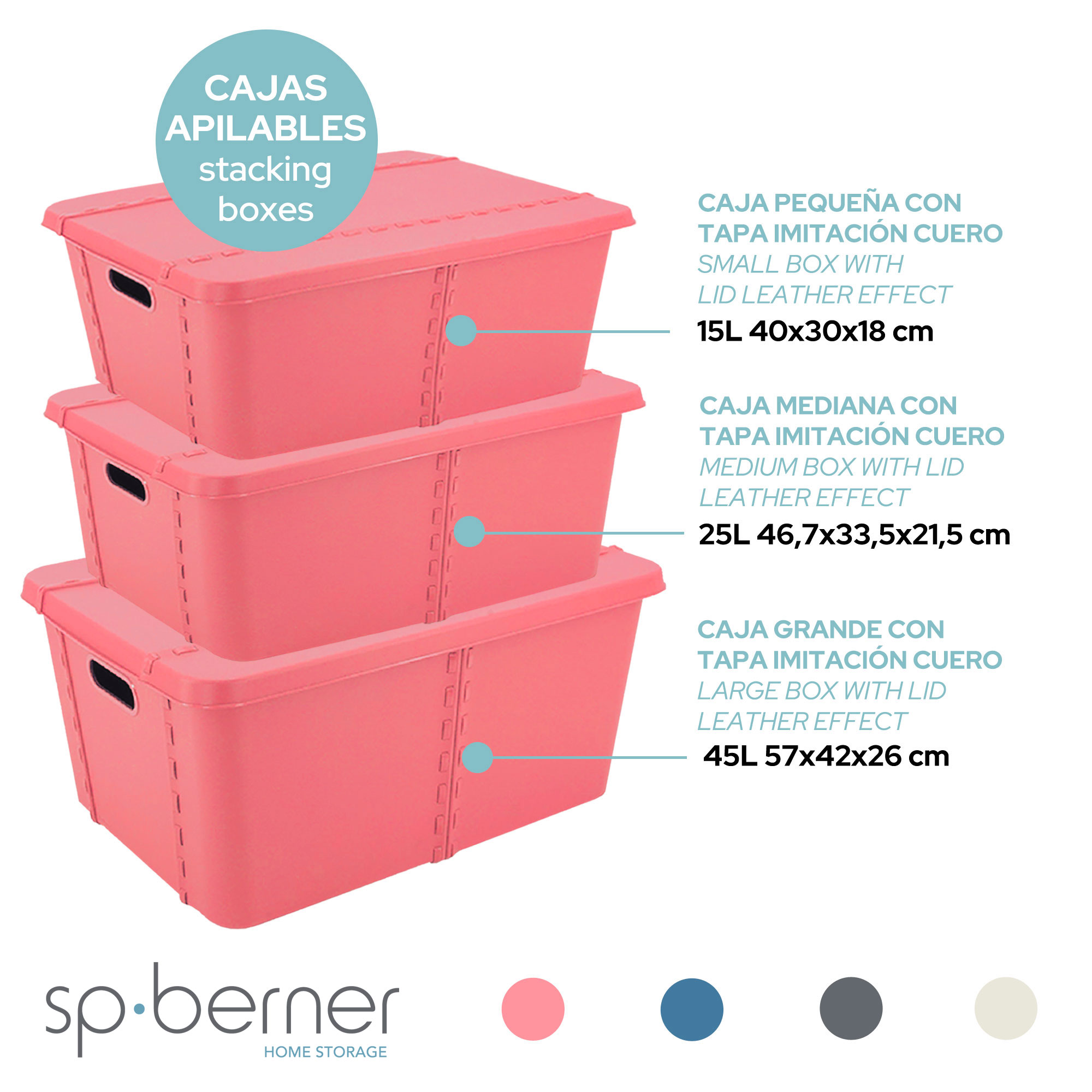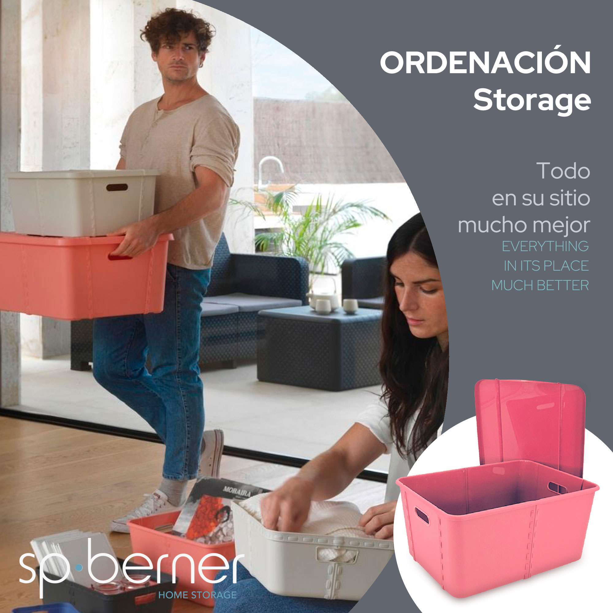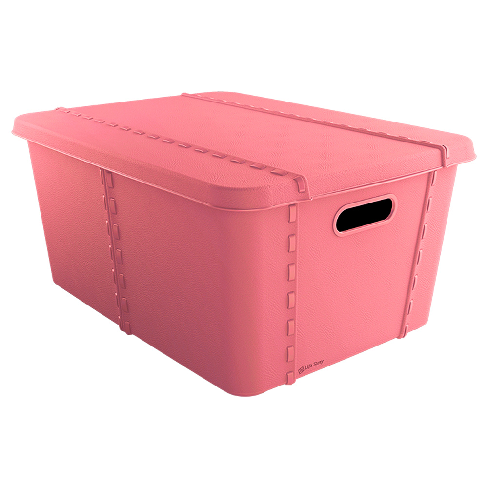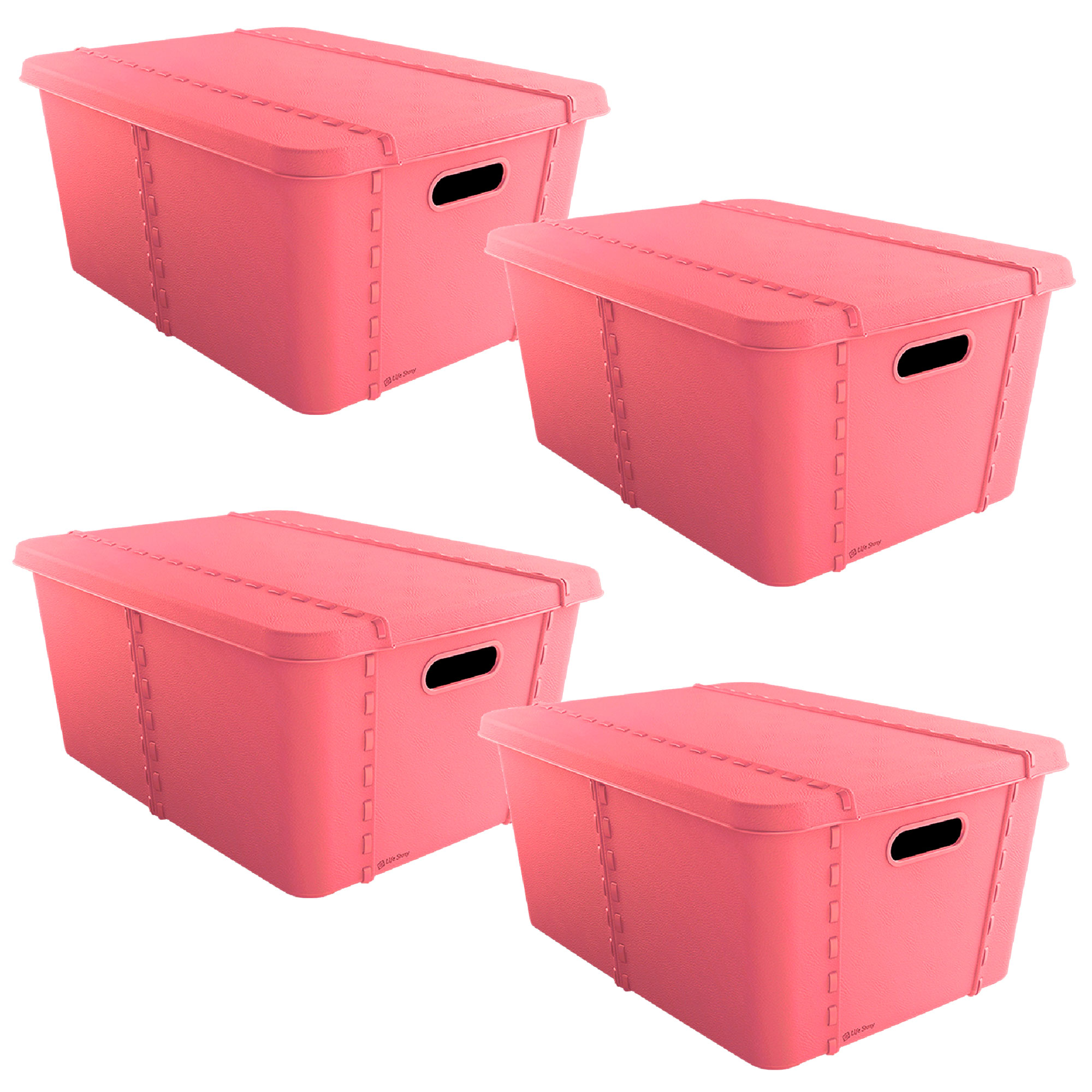 4x boîte de rangement avec couvercle moyen 25l rose 46,7x33,5x21,5