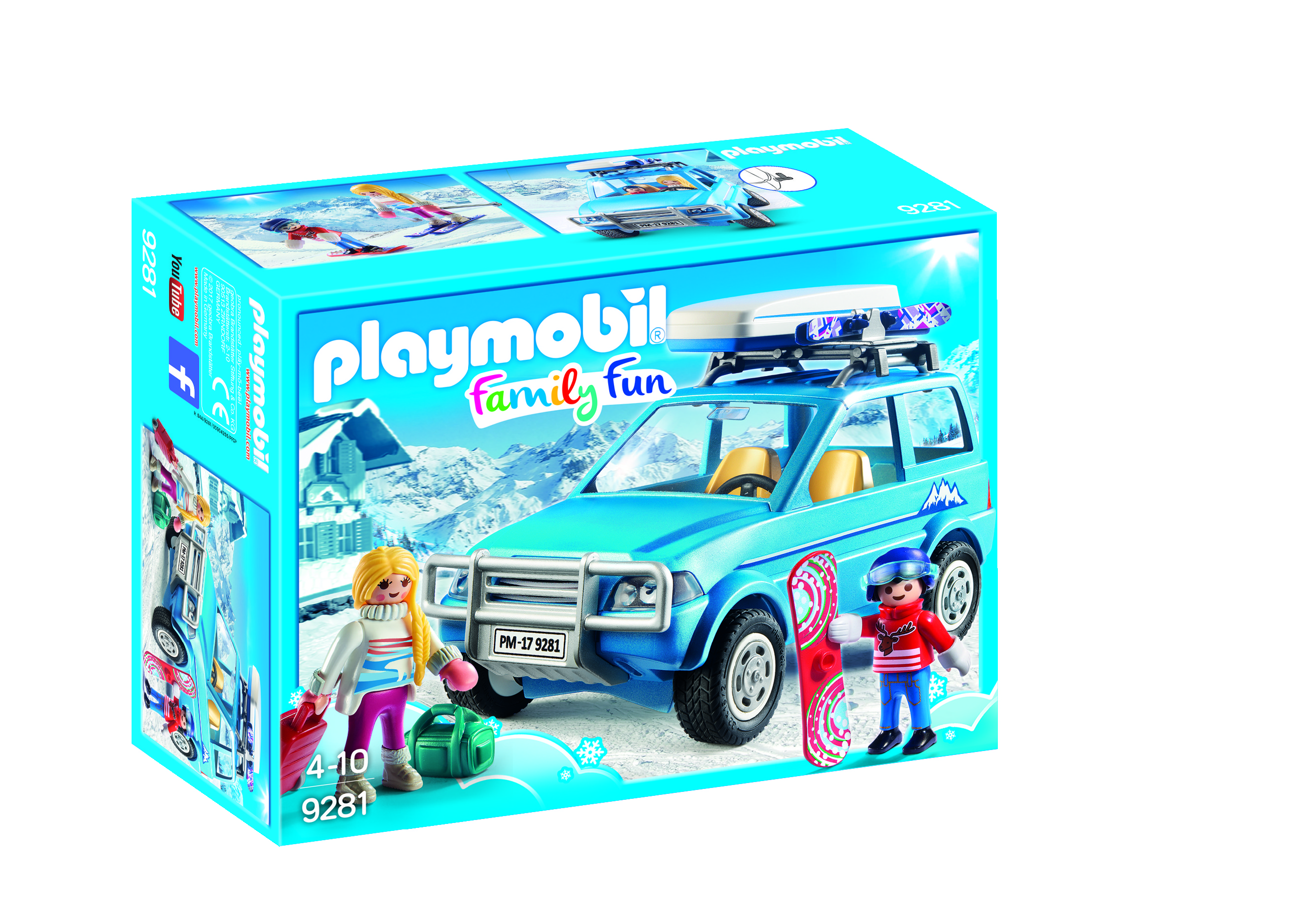 La voiture avec coffre de toit convient parfaitement pour partir skier. Ce spacieux 4x4 offre suffisamment d'espace pour les passagers et l'équipement de ski. Le porte-bagages amovible permet de ranger aisément les skis, les bâtons de ski et le snowboard des enfants. Casque, lunettes et gants n'ont évidemment pas été oubliés. Tout est chargé ? Tout le monde à bord et c'est parti ! Contient deux personnages. Les bagages se rangent dans le coffre.