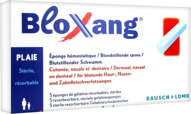 Les éponges hémostatiques Bloxang sont utilisées sur des saignements nasaux, dermatologiques ou encore en cas d'extraction dentaire afin de stopper les saignements légers à moyens. Entièrement fabriquées à base de gélatine d'origine porcine, les éponges hémostatiques Bloxang vous offrent une excellente tolérance cutanée et tissulaire grâce à son pH neutre, évitant ainsi les risques de réaction allergique. Les éponges hémostatiques Bloxang sont résorbables et stériles, assurant l'hémostase et donc le traitement des plaies en activant le processus de coagulation. Leur texture poreuse leur permet d'absorber une grande quantité de sang. L'hémostase est un mécanisme de protection qui vise à maintenir le sang à l'intérieur des vaisseaux lorsque ceux ci sont endommagés en réparant la brèche en différentes étapes. L'hémostase primaire va tout d'abord agréger les plaquettes au niveau de la brèche afin de la colmater, formant un caillot afin de diminuer le saignement.