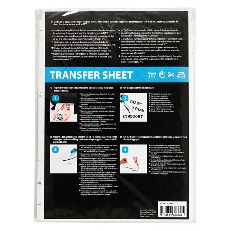 Feuille pour impression et collage textile. Utilisez ces feuilles pour customiser vos tote-bags, coussins ou tee-shirt. Ces 5 feuilles de la marque Creotime ont une surface caoutchouteuse. Imprimer les motifs de votre choix avec une imprimante laser ou à jet d'encre. Placez ensuite la feuille face à votre textile puis repasser. Attendez que ce soit refroidit pour enlever le papier. Attention, il faut imprimer à l'envers sur la feuille. Peut être coupé aux ciseaux, lavable à 30°C. Feuilles blanche A4.
