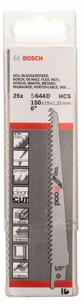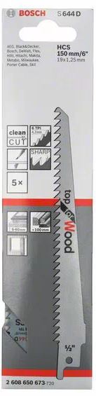 | Libellé | 5 lames de scie sabre 150mm S 644 D pour le bois - BOSCH - 2608650673 |