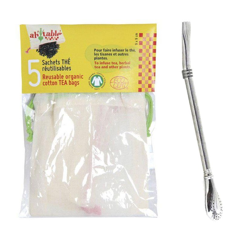 | Libellé | 5 sachets de thé réutilisables + paille inox avec filtre |