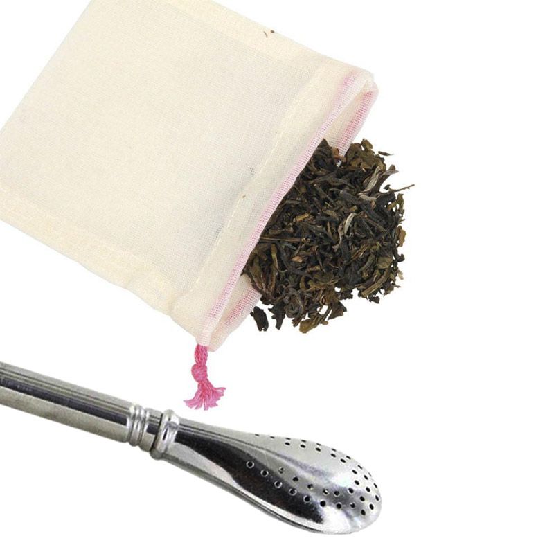 5 sachets de thé réutilisables + paille inox avec filtre