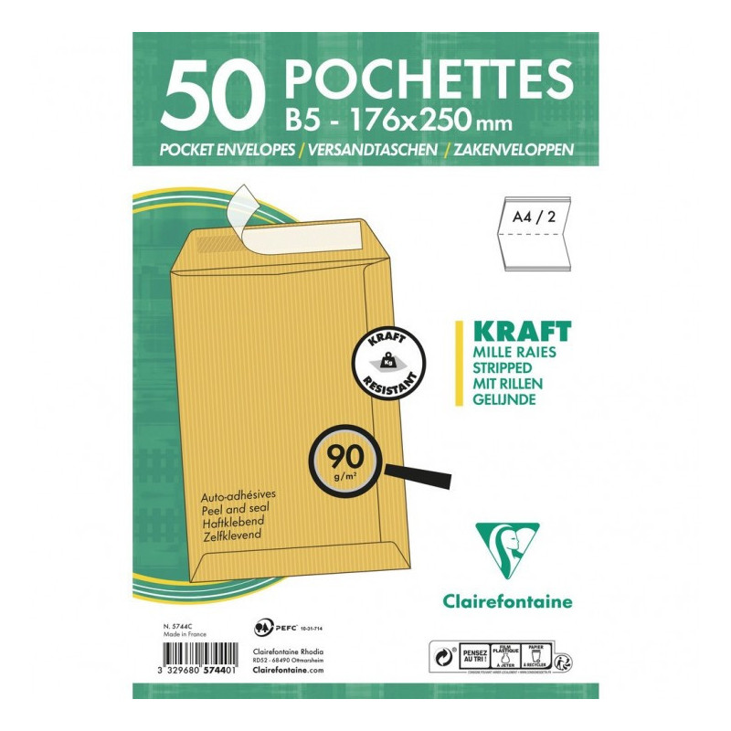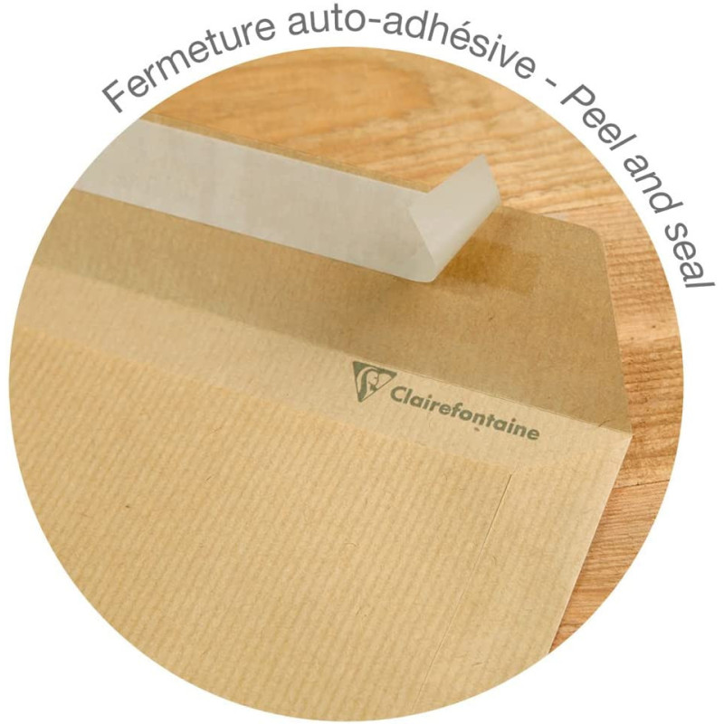 50 enveloppes - Kraft brun - B5 176x250mm - Auto-adhésive - Clairefontaine