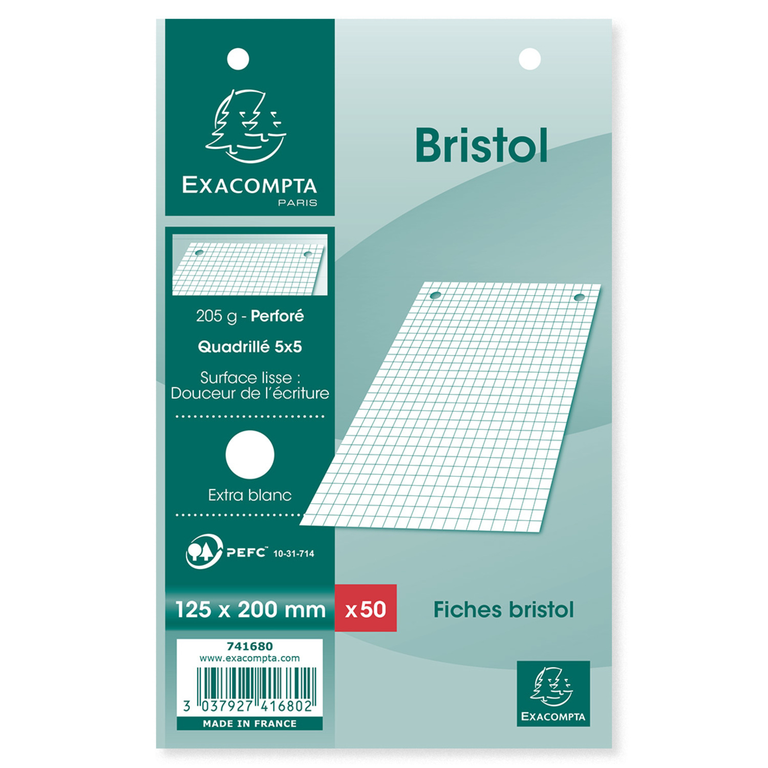| Libellé | 50 Fiches Bristol Blanches Perforées 125X200 5X5 P.E.F.C. 205G Sous Film Avec Encart Exacompta |
