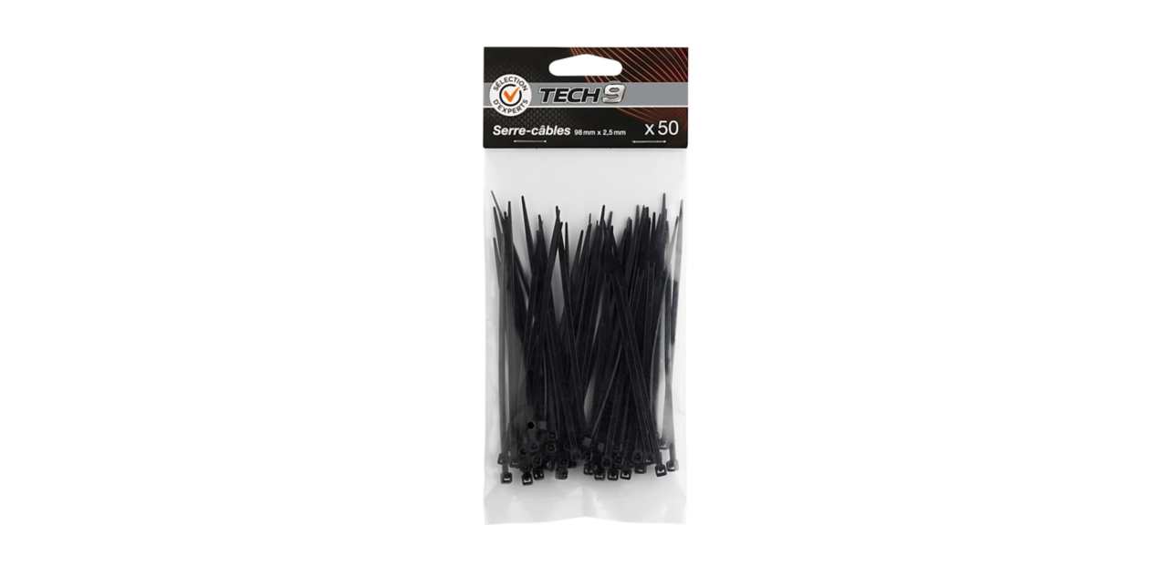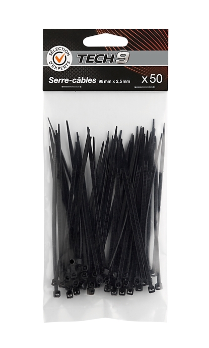 | Libellé | 50 serre-câbles 98 mm x 2,5 mm - Sélection d'Experts - Tech9 |