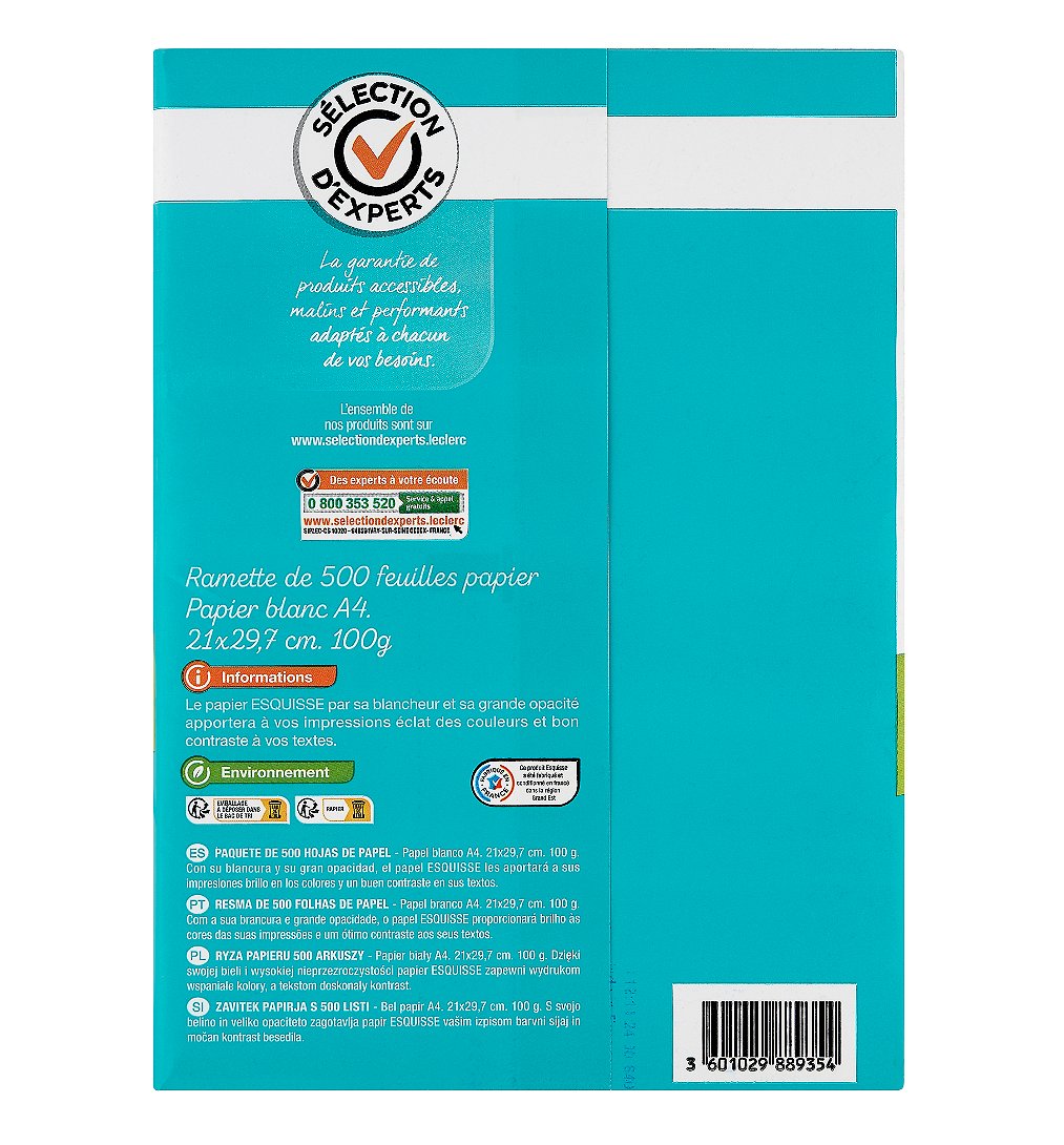 | Libellé | 500 feuilles blanches 100g 21x29,7cm - Sélection d'Experts - Esquisse |