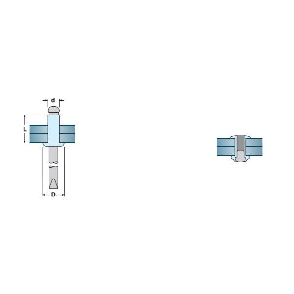 Libellé 500 RIVETS ALU TETE STANDARD DE 4.8 X 12 TIGE ACIER