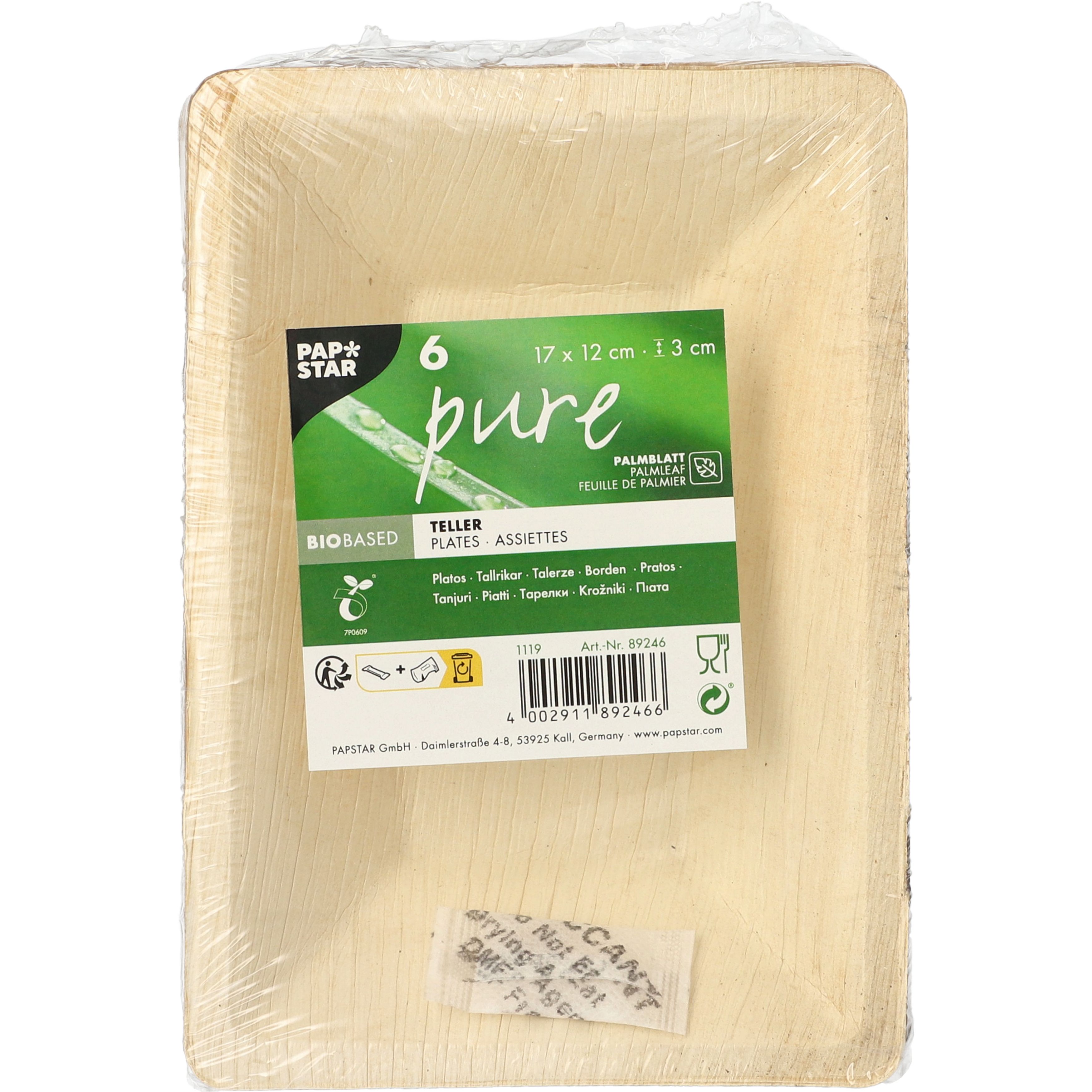 | Libellé | 6 Assiettes Feuille de palmier "pure" rectangulaire 3 cm x 17 cm x 12 cm naturel |