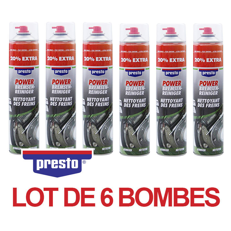 6 bombes de produit nettoyant pour freins - Voiture - Moto - Sans acétone - Presto