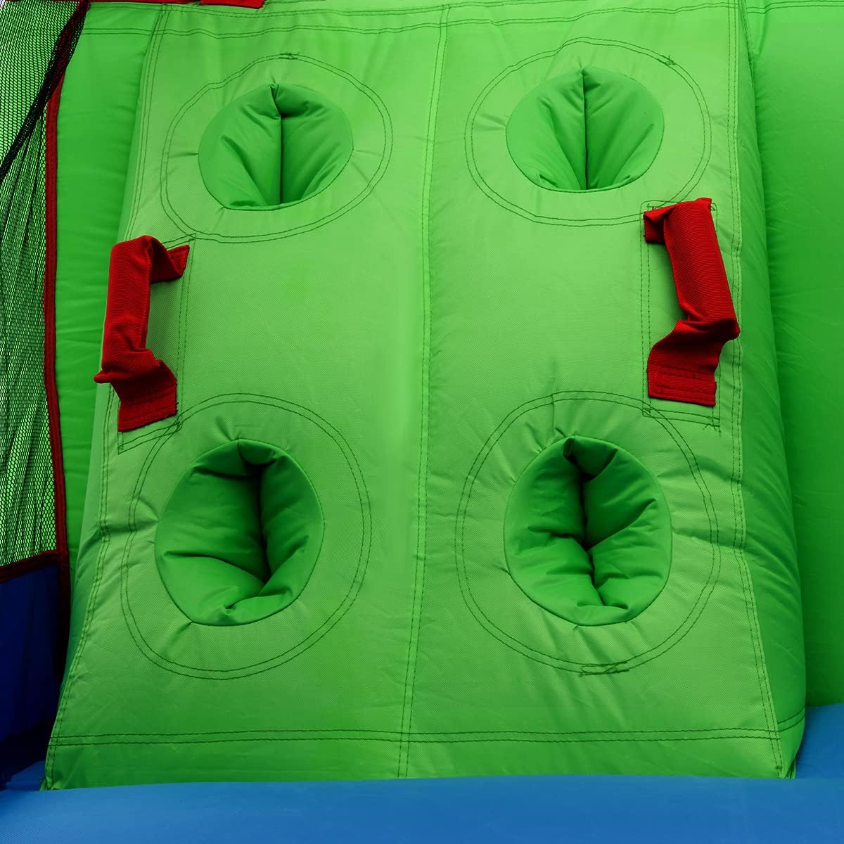 - Aires de Jeu Attrayantes 6 en 1 : Ce château gonflable est équipé d'un trampoline, d'un toboggan, d'un panier de basket-ball, d'une pataugeoire, d’un canon à eau et d’un mur d'escalade, tous très populaires auprès des enfants. Ce parc aquatique gonflable amusant augmente l’intérêt des enfants pour les sports, réduisant ainsi le temps de jeu vidéo.