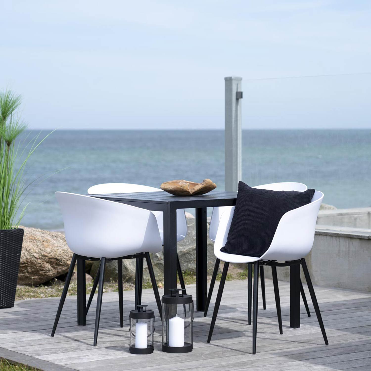 Ces fauteuils de jardin s'intégreront parfaitement sur votre terrasse ! Fabriqués en acier et polypropylène, ce sont des chaises de jardin durables et résistantes, complètement adaptées à un usage extérieur. Elles peuvent être utilisés pour compléter votre table de jardin, ou comme chaises d'appoint pour un salon de jardin ou pour prendre un bain de soleil. Leur couleur blanche et leur base en métal ajouteront une touche moderne à votre décoration ! Dimensions : longueur 53 cm / Hauteur 79 cm / Largeur 54,5 cm. Hauteur d'assise : 45 cm. Profondeur d'assise : 41. Matière : Acier, polypropylène. Poids : 4.5 kg. Fauteuils livrés démontés, faciles à assembler. Quantité : 4 fauteuils.