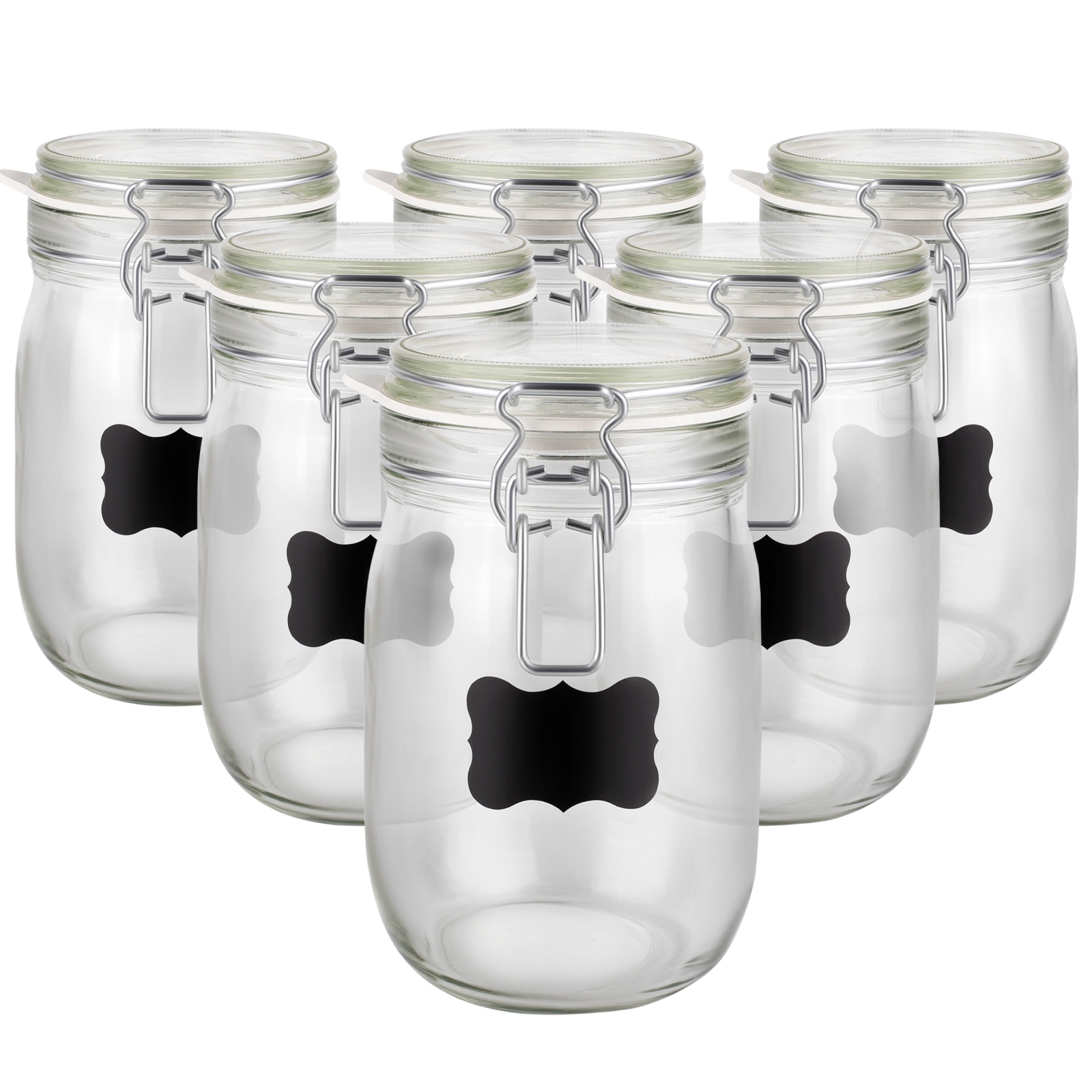 6 x 1L Bocaux en Verre | 1100ml | Bocal Hermétique Alimentaire de Conservation | Pot avec Couvercle