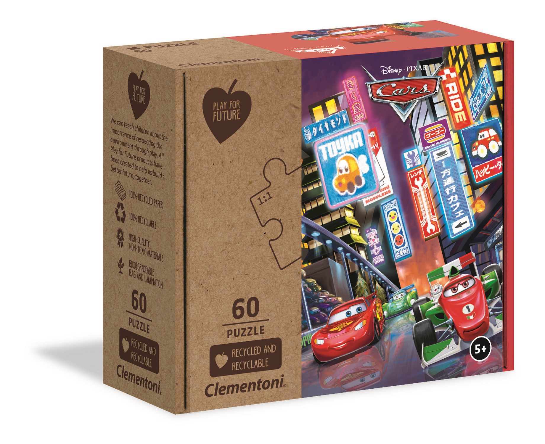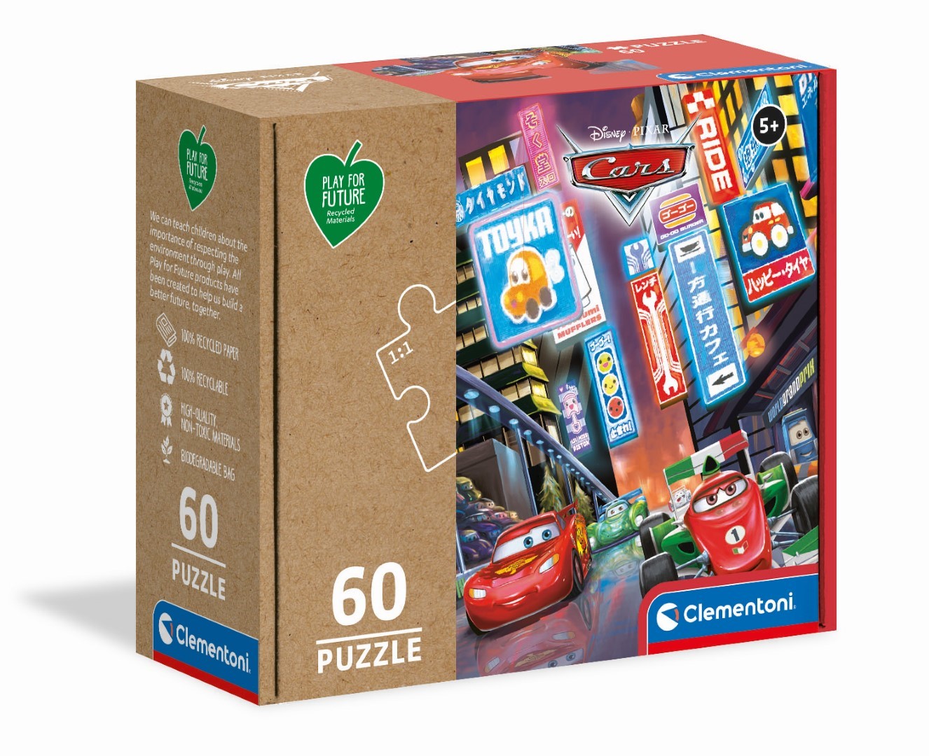 Un coffret contenant un puzzle de 60 pièces de dimensions 33,5 x 23,5 cm, à l'effigie des personnages préférés des enfants. Fabriqué à partir de matériaux 100% recyclés.