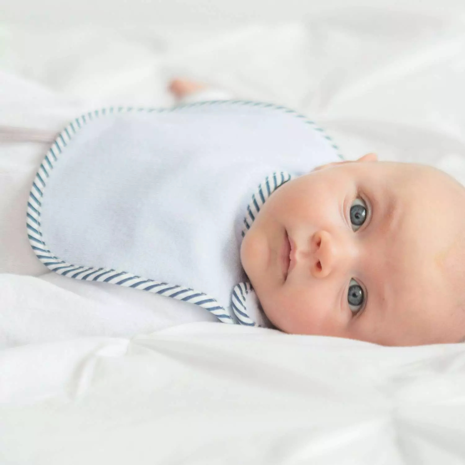 Ces adorables bavoirs naissance sont le must have de votre valise maternité ! Conçus spécialement pour les premiers jours de votre nourrisson, ils épousent parfaitement son petit torse afin de protéger ses habits des éventuelles tâches de lait. De dimensions 18x21 cm, vous pourrez utiliser chaque bavette bébé dès les premiers instants de vie de votre poupon jusqu'à ses 4 mois environ. Déclinés sous 3 coloris, vous aurez le choix entre beige, rose ou bleu. On retrouve des liserés colorés avec de jolis détails : des poids, des rayures, des étoiles, des traits et deux classiques. Par lot de 7, cet ensemble de bavoir bébé est très pratique et pourra être utilisé tout au long de la semaine. Votre bébé d'amour va adorer la matière en éponge super douce et absorbante.