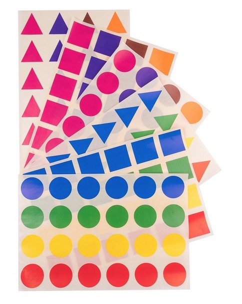 Gommettes géométriques grandes tailles de formes et couleurs différentes.