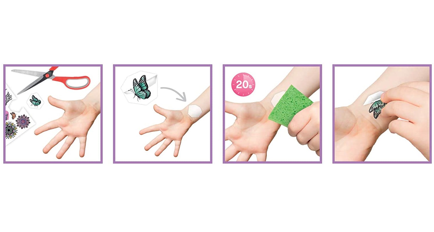 Inclus : 2 feuilles de tatouages temporaires lavables. Le nombre de tatouages peut varier selon la façon dont ils sont découpés.