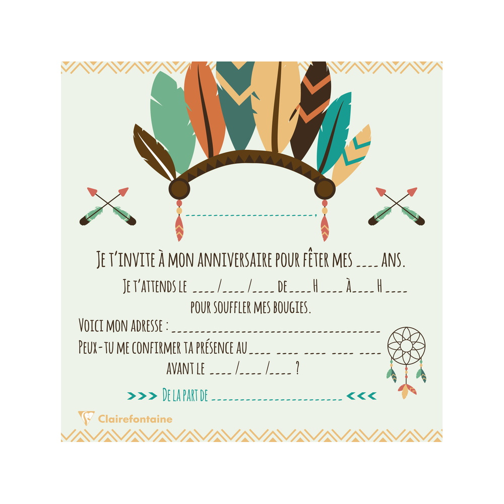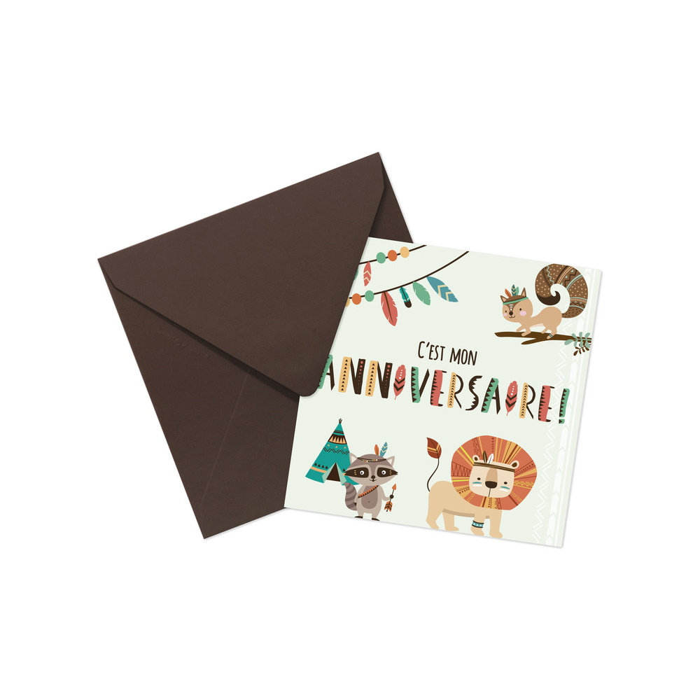 8 Cartes Invitation Enfant - C'est Mon Anniversaire - Indiens