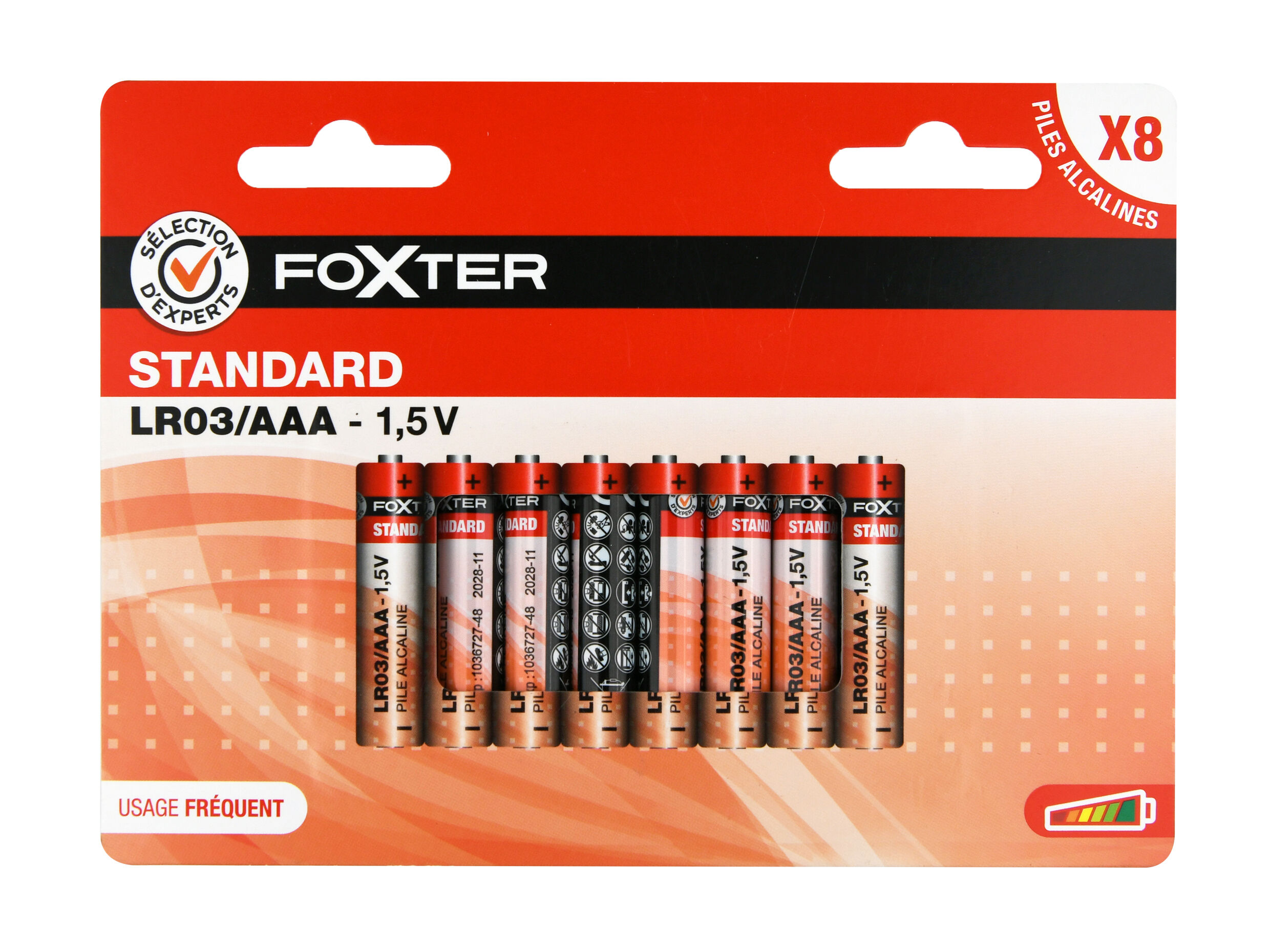 8 piles alcalines LR03/AAA 1,5V - Standard - Sélection d'Experts - Foxter - Type : alcaline - Forme : LR03/AAA - Idéales pour un usage fréquent (télécommande, lampe torche…)