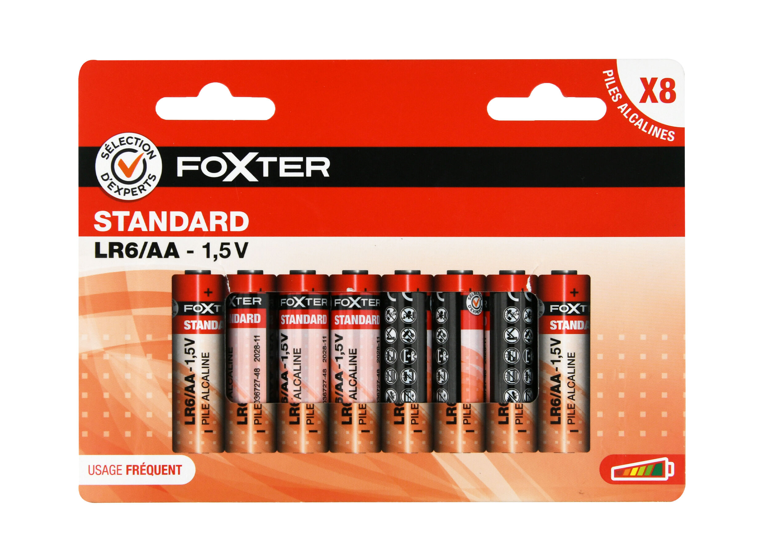 8 piles alcalines LR6/AA 1,5V - Standard - Sélection d'Experts - Foxter - Type : alcaline - Forme : LR6/AA - Idéales pour un usage fréquent (télécommande, lampe torche…)