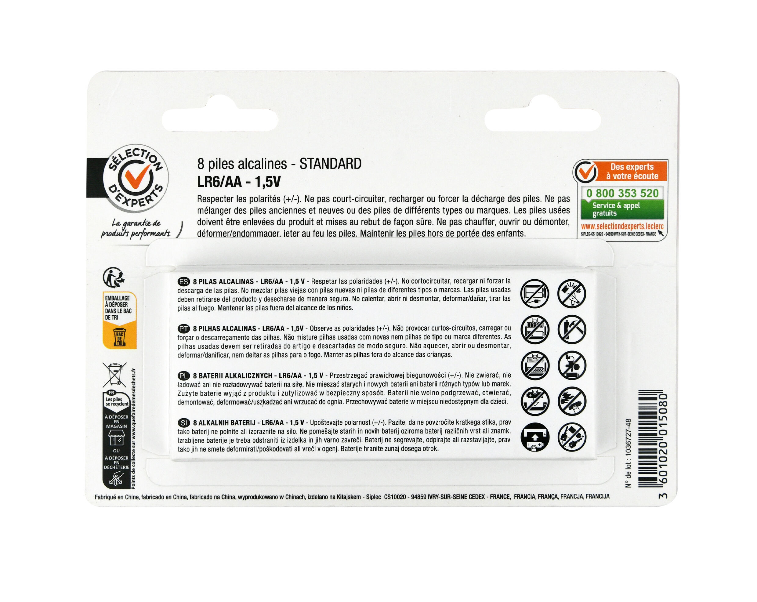| Libellé | 8 piles alcalines LR6/AA 1,5V - Standard - Sélection d'Experts - Foxter |