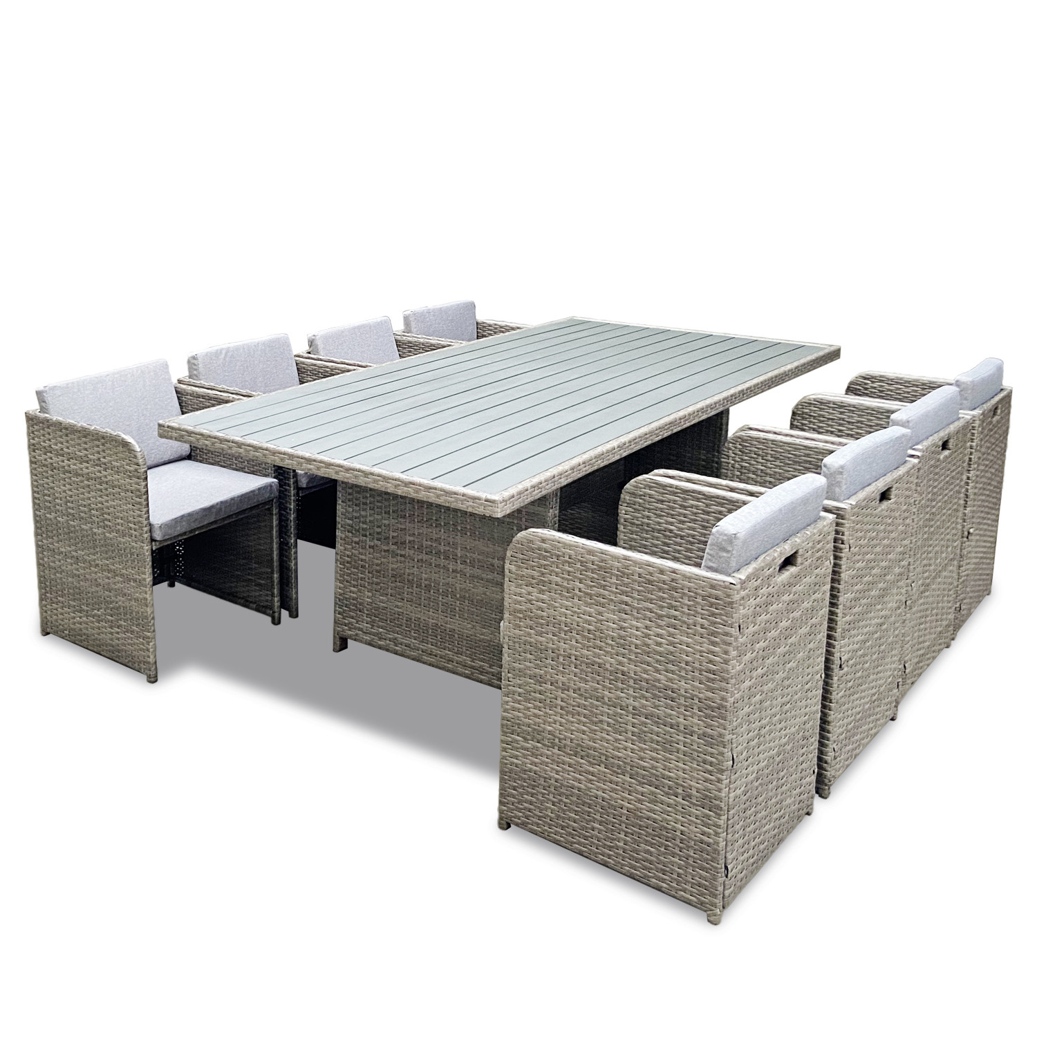 8 Places - Ensemble encastrable salon table de jardin aluminium et acier, housse de protection- Gris - CA
