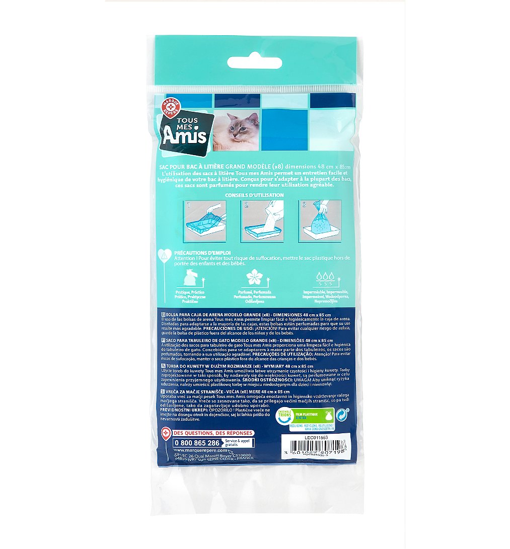 | Libellé | 8 sacs pour bac à litière 48 x 85 cm - Marque Repère - Tous mes amis |