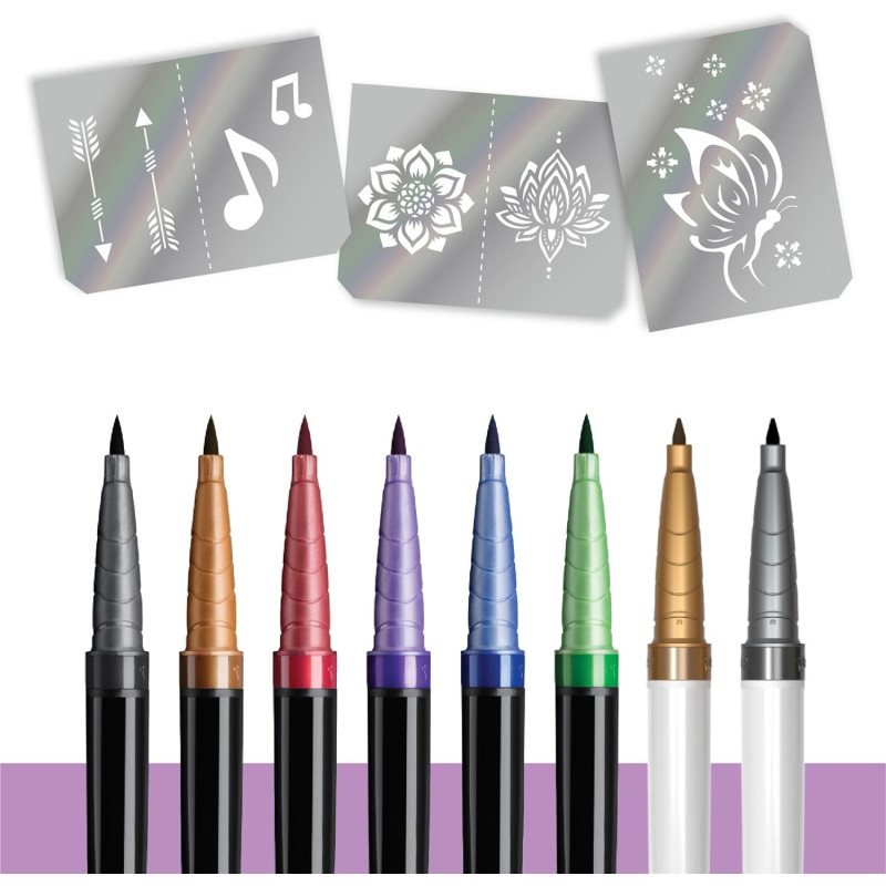 8 stylos de tatouage temporaire + 3 pochoirs - Assortis couleurs - BIC - BodyMark
