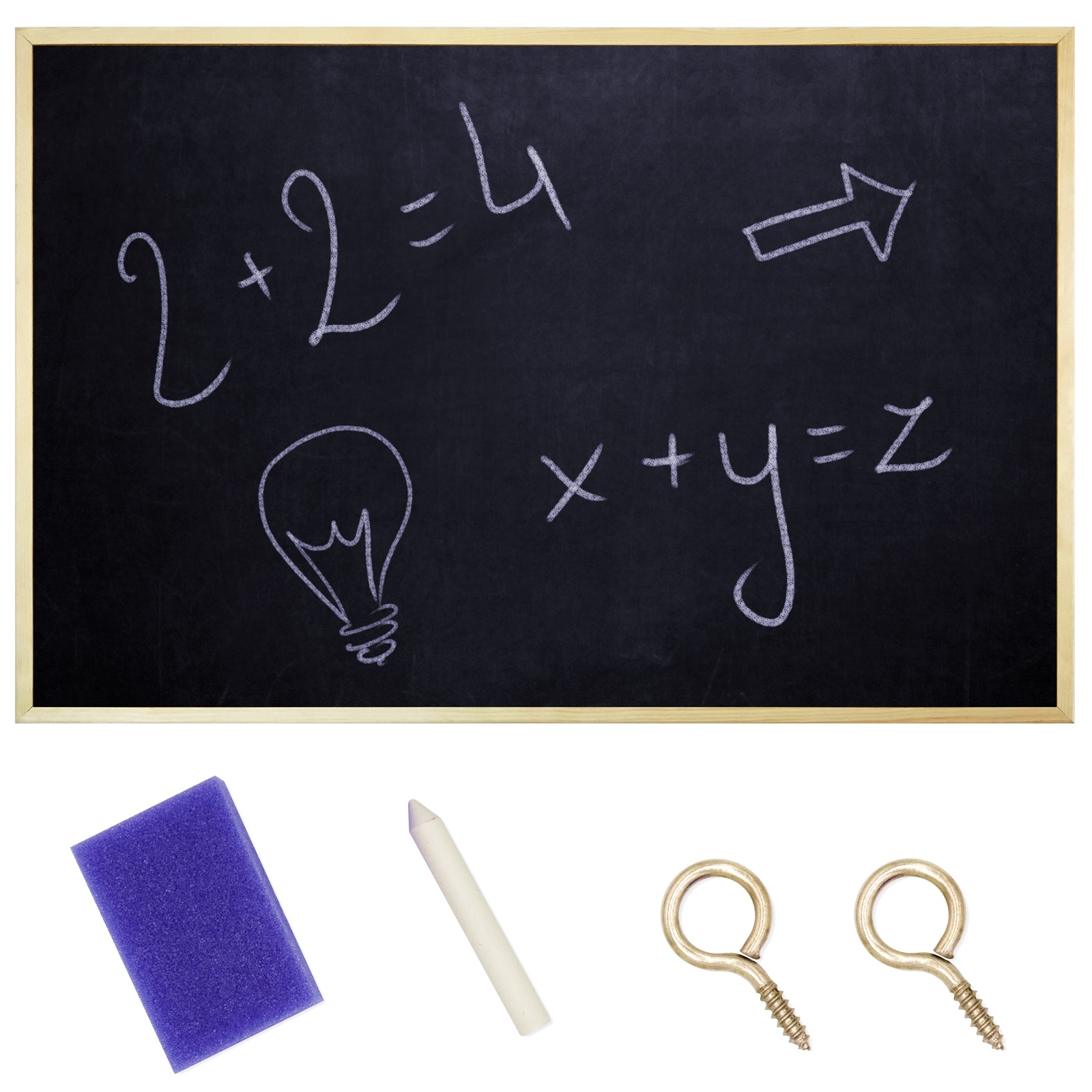 80x60 cm Tableau Craie Noir Ardoise Mural | Cadre de Pin | Effaceur Brosse + Stylo + Kit Suspension Inclu