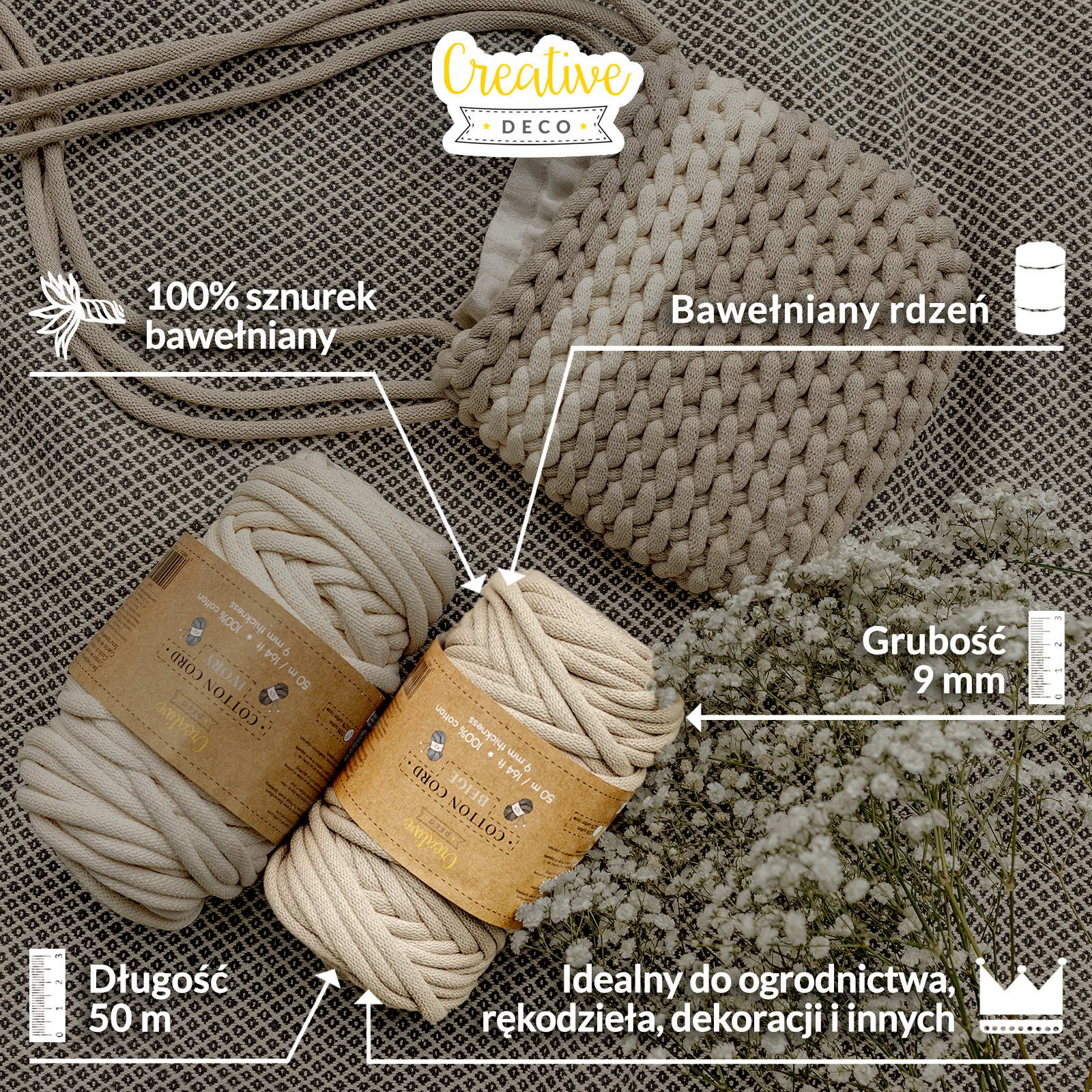IDÉAL POUR L'ARTISANAT – Notre cordon est entièrement en coton (tresse de coton et âme en coton) dans une couleur délicate et claire. Avec une épaisseur de 9 mm et sa douceur, il est idéal pour l'artisanat aussi bien fonctionnel que décoratif. MULTI-USAGE - Le cordon est idéal pour tresser, emballer, décorer, relier, accrocher, jardiner, fabriquer des bijoux, des jouets, du bricolage, de l'artisanat et de nombreux autres projets. Vous pouvez l'utiliser pour emballer des cadeaux de Noël, de Pâques ou d'anniversaire, pour attacher des étiquettes, pour faire des cartes de vœux, pour décorer des vases, des pots et des bouteilles, pour attacher des plantes et des fleurs dans le jardin et bien d'autres. PRATIQUE – La ficelle est emballé sur une bobine, donc elle est facile à utiliser sans désorganisation et des nœuds. Le rouleau rend le produit pratique à stocker et pour garder sa forme aussi. • PRODUIT ÉCOLOGIQUE - Fabriqué à partir de coton 100% naturel, elle est entièrement biodégradable et réutilisable. La couleur de la ficelle est naturelle, nous n'utilisons pas de couleurs artificielles pour la production. En utilisant des produits biologiques, vous pouvez être sûr de prendre soin de l'environnement.