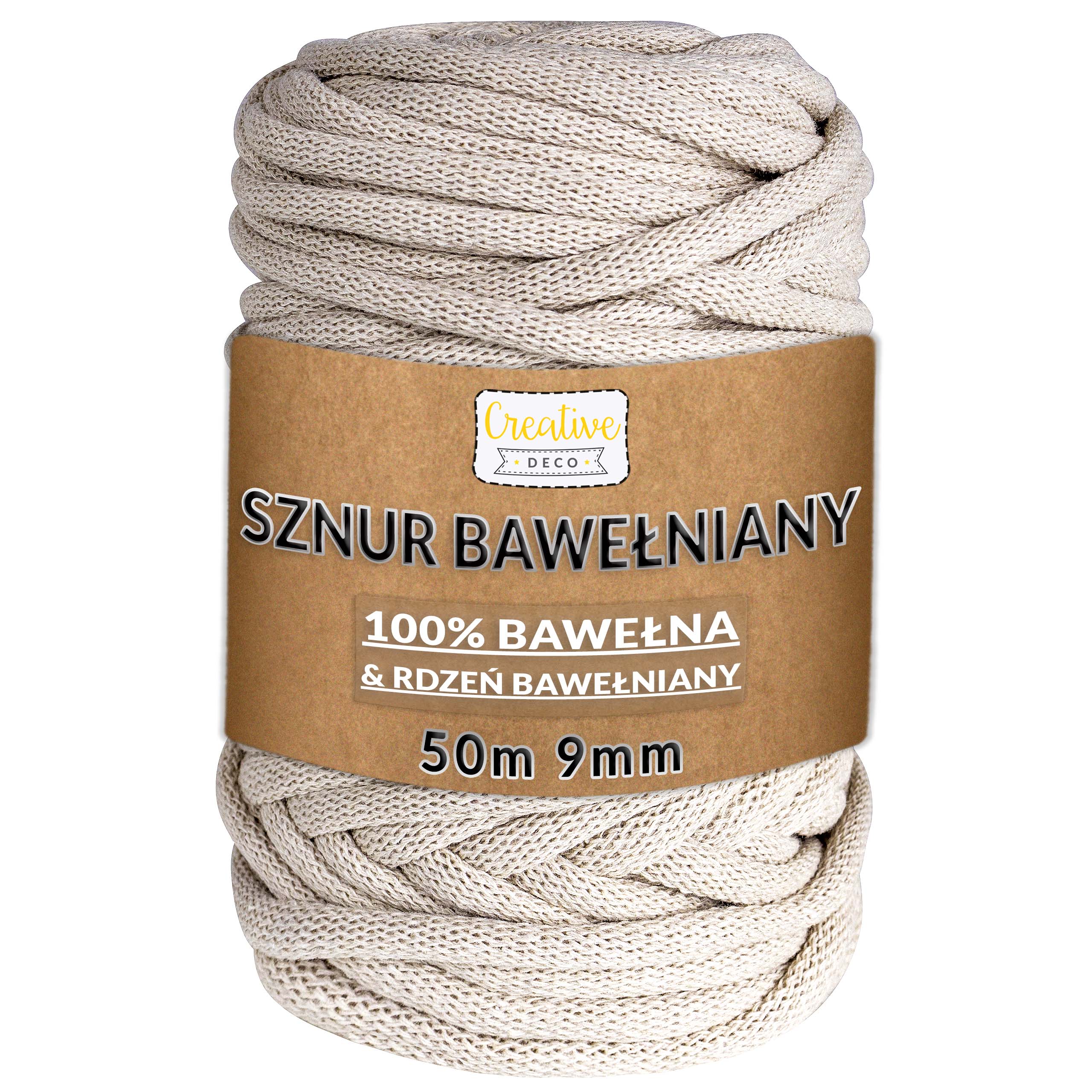 9mm x 50m Corde Macramé Fil de Coton Beige | +/- 0.5mm d’Épaisseur | Cordelette Naturel