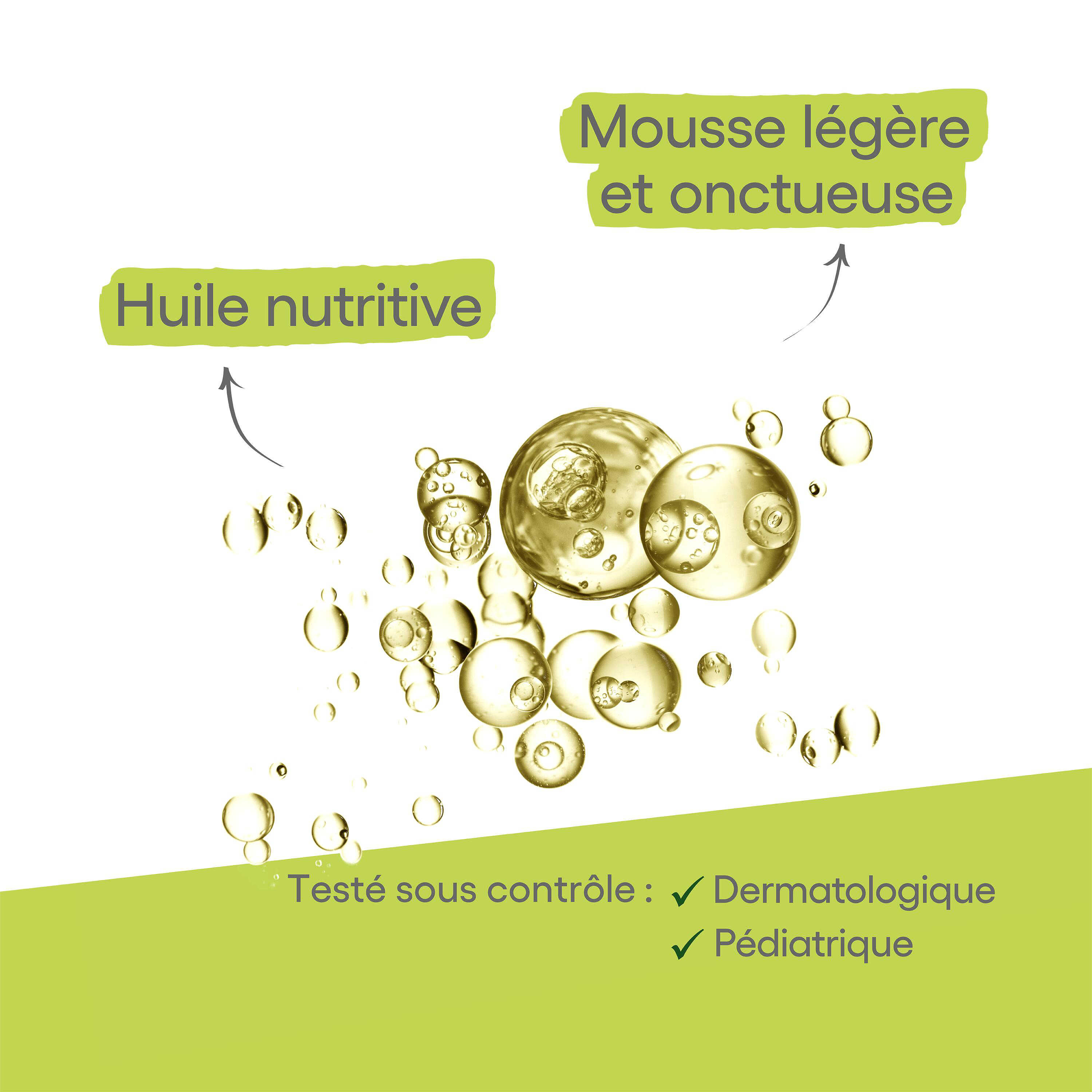 L'huile lavant émolliente, nettoie et soulage les peaux fragiles sèches à tendance à l'éczéma atopique. Immédiatement après application, 100% des peaux retrouvent apaisement¹. En trois semaines, la sécheresse diminue de 95 %². Sa formule BIODEGRADABLE* à 91 % d’ingrédients d’origine naturelle s'emploie quotidiennement sous la douche ou dans le bain, sur le visage et le corps.