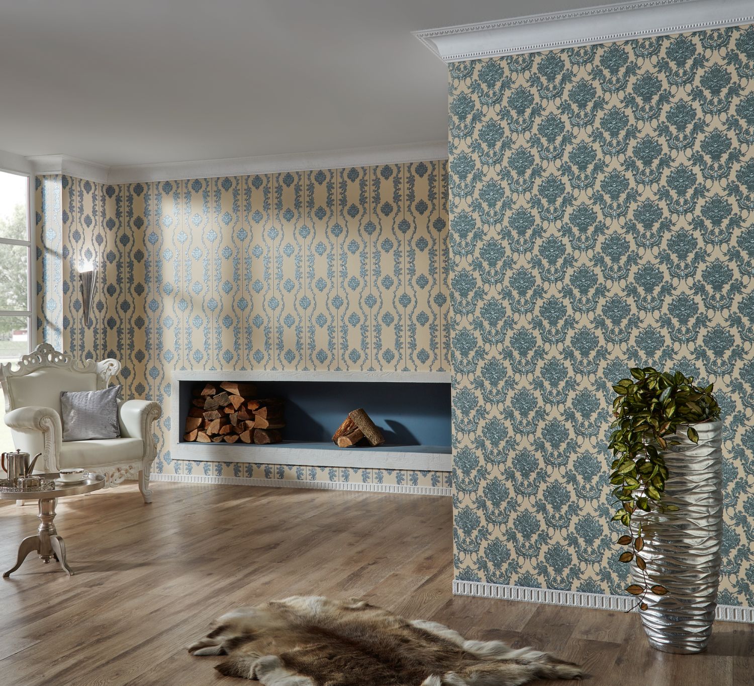 | Libellé | A.S. Création papier peint baroque bleu, argent et couleur sable - AS-344926 - 53 cm x 10,05 m |